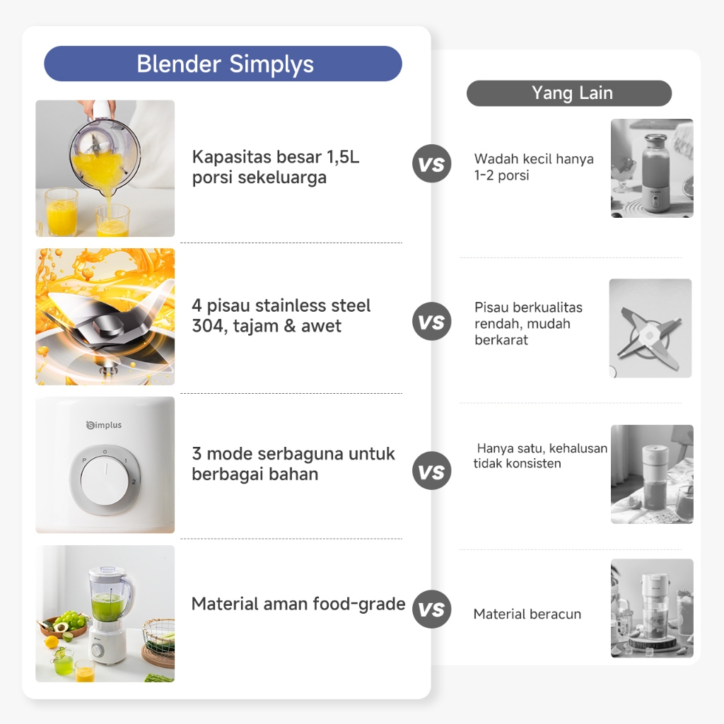 [Mall] Simplus Juicer Blender Multifungsi Kapasitas 1,5L Pisau silang 4 bilah baja tahan karat 304