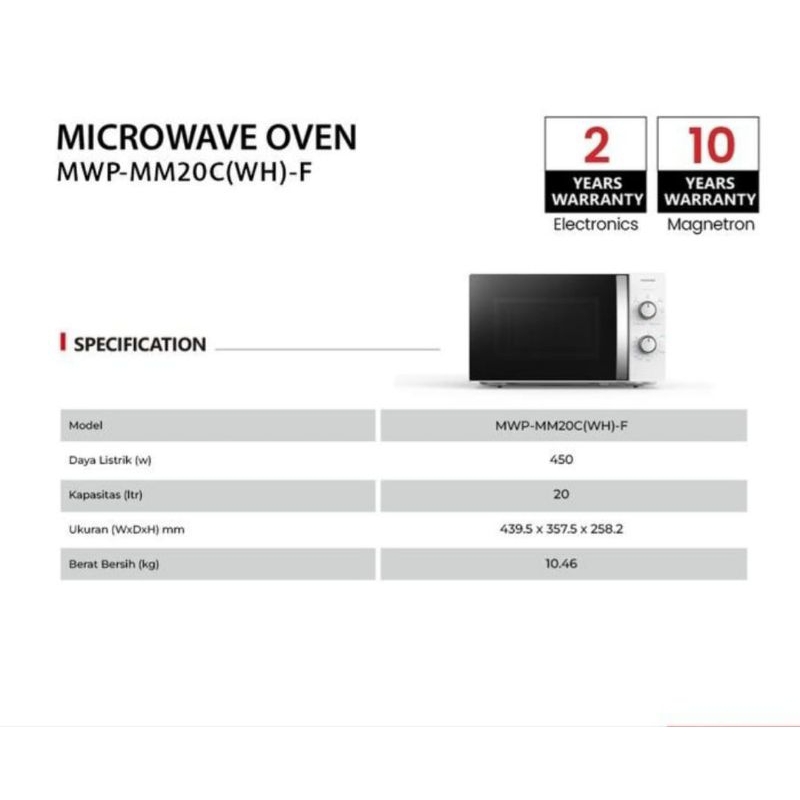 [Mall] TOSHIBA MICROWAVE OVEN 20L MWP MM20C LOW WATT/ 5 Level Power