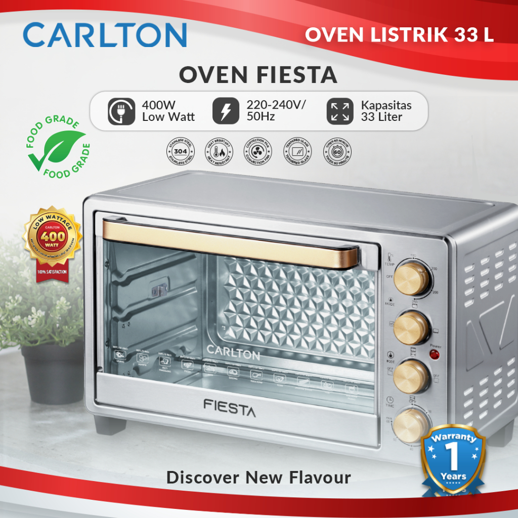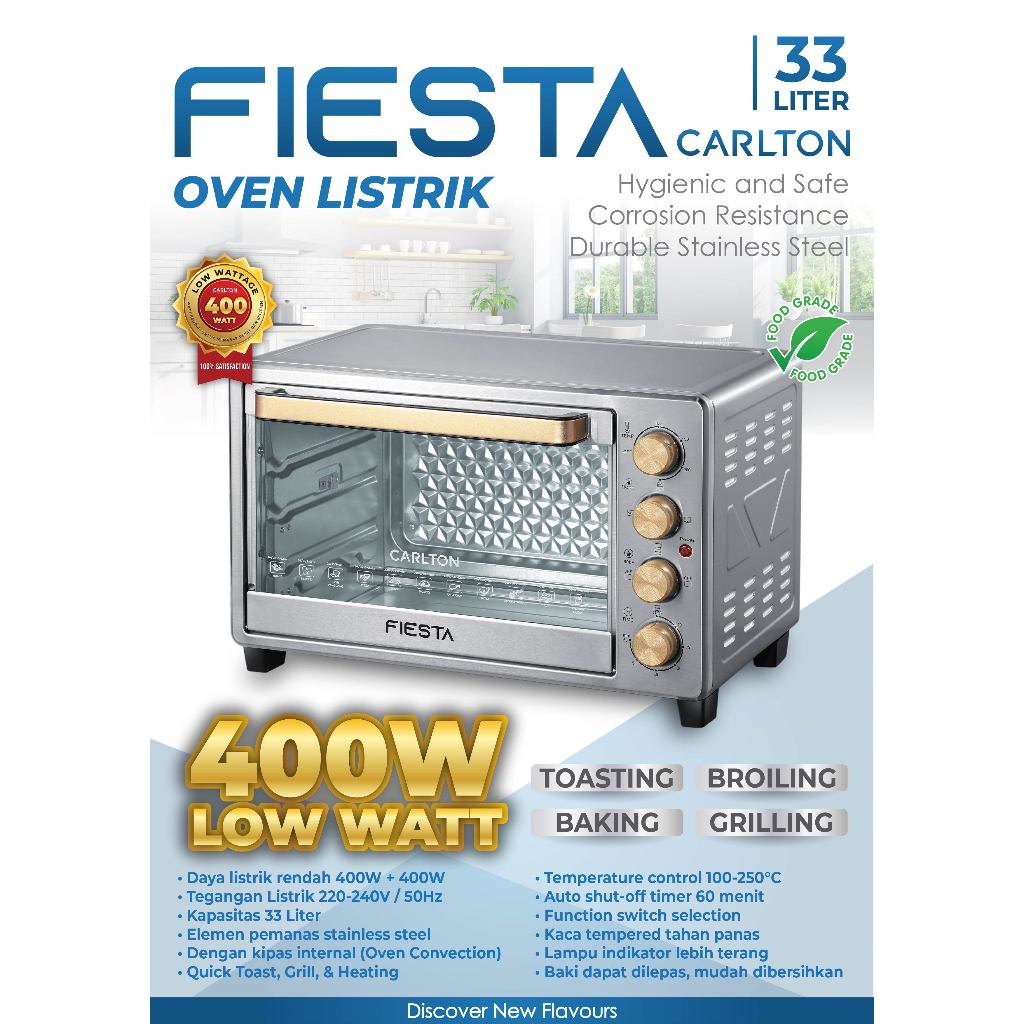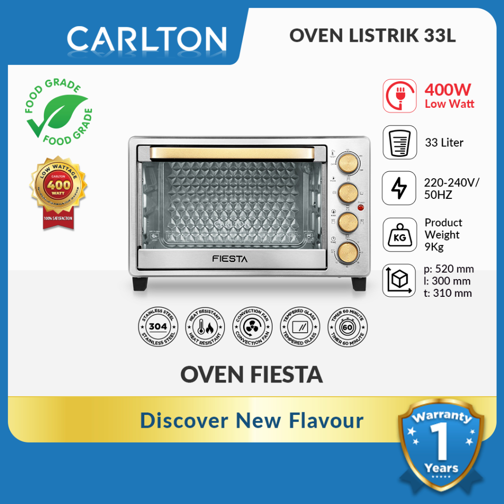 [Mall] CARLTON Oven Listrik FIESTA 33 Liter Stainless Steel Low Watt Pemanas Atas Bawah Rotisserie Function