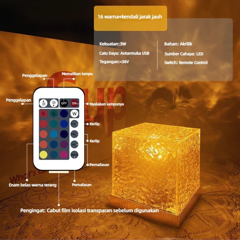 Lampu Proyektor Kristal Elegan Meja 16 Warna Lampu LED Kamar Lampu Tidur Aesthetic