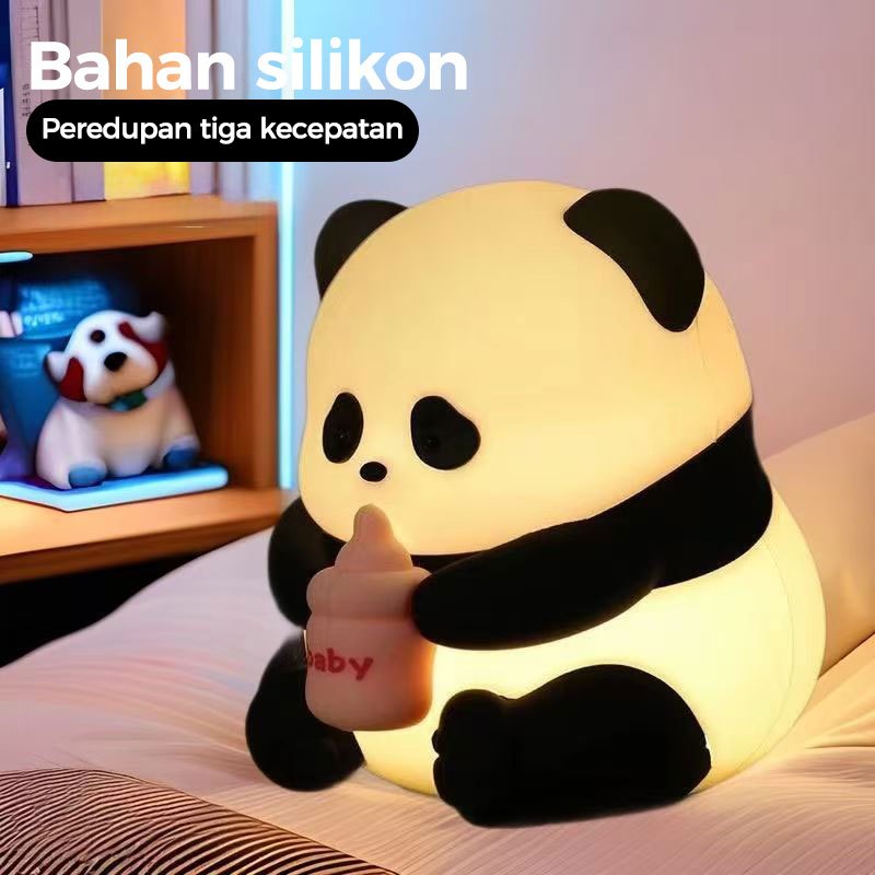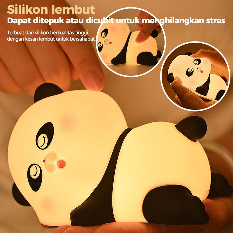 Lampu Tidur Anak Panda Lucu LED Silikon – Lampu Meja USB Dapat Ditekan Peredupan 3 Level
