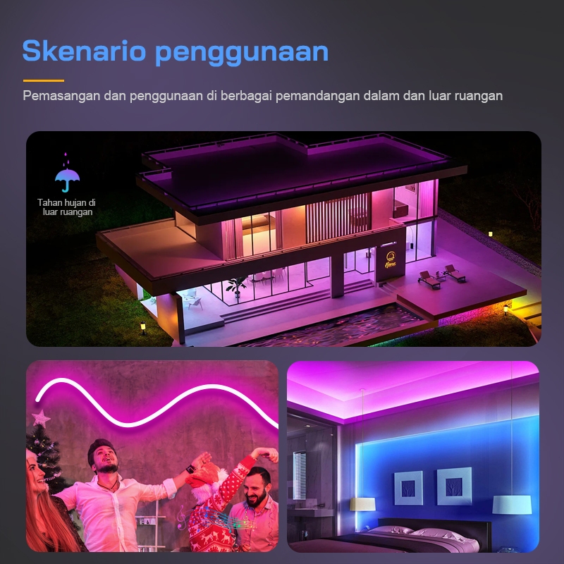 Lampu LED Neon Fleksibel 220V RGB untuk Dekorasi Kamar Tidur Aesthetic, Tahan Air 3M-20M