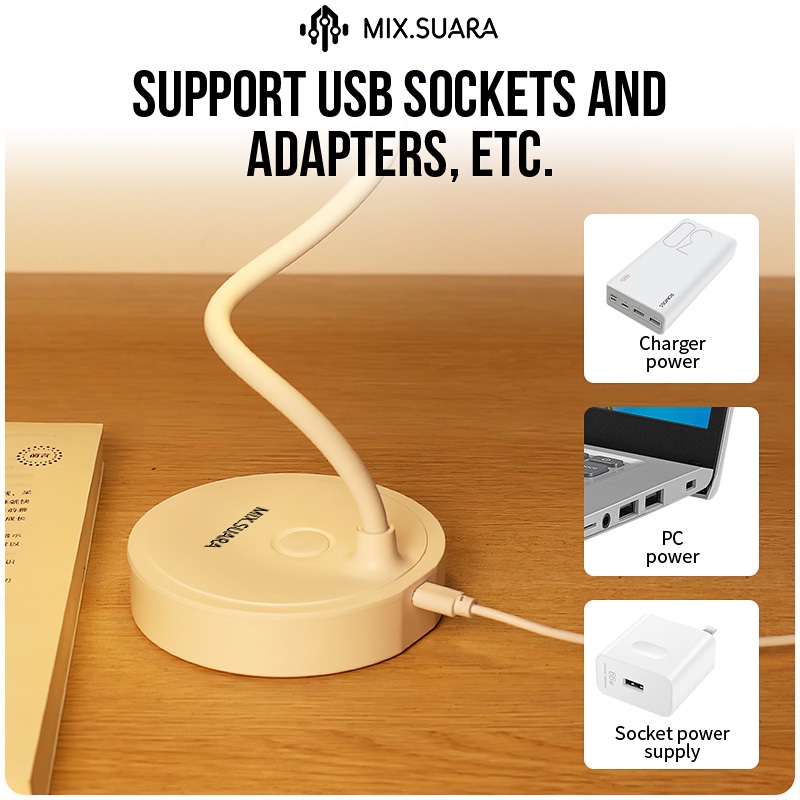 MIX.SUARA 16 Led Lampu Baca Membaca 2000mAh Rechargeable Meja Belajar Flexible Rias Lamp USB Plug Tricolour Sentuh Clip