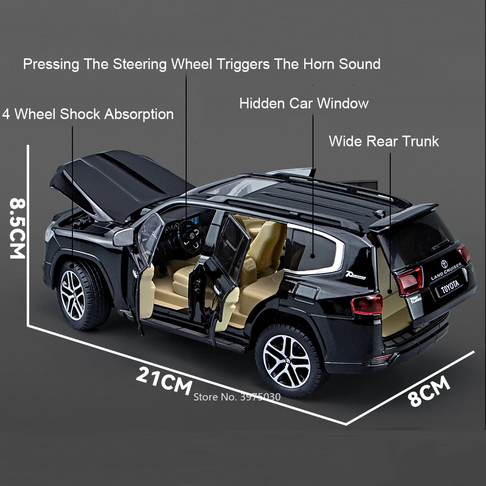 1:24 Toyota Land Cruiser 300 LC300 GXR + KEY Koleksi Diecast Miniatur Pajangan Mobil Sport SUV Kunci