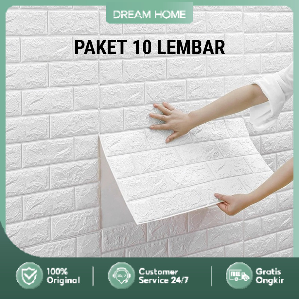 Paket 10 Lembar Wallpaper Tembok Dinding 3D Model Batu Bata Putih Walpaper Brickfoam Bata 38X70Cm