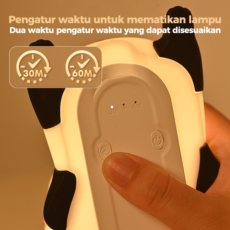 Lampu Tidur Anak Karakter Panda Silikon Lucu - Rechargeable USB Type-C