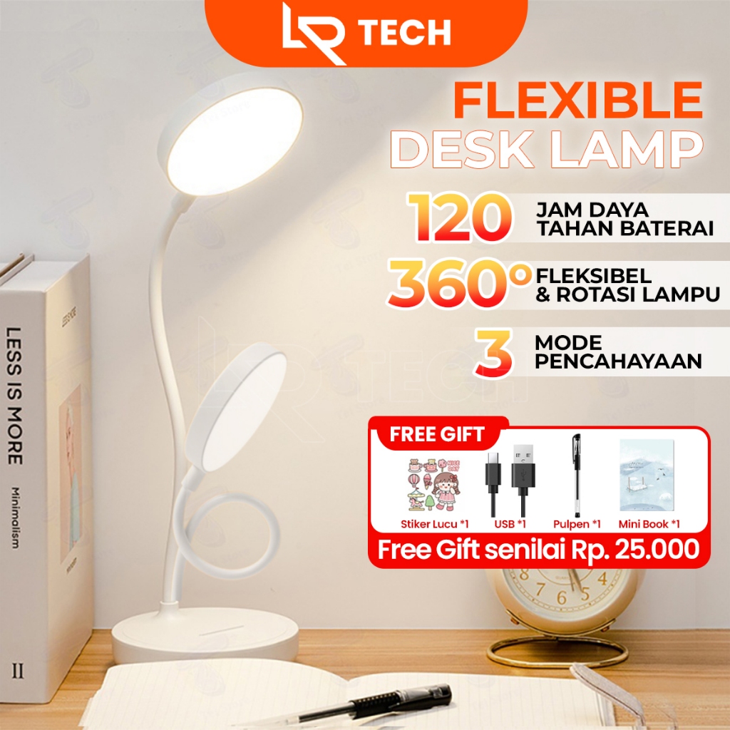 (FREE GIFT) LRTECH Lampu Meja LED Original Lampu Belajar 3 Warna Lampu Lampu Tidur Fleksibel dapat dilipat Eye Protectio