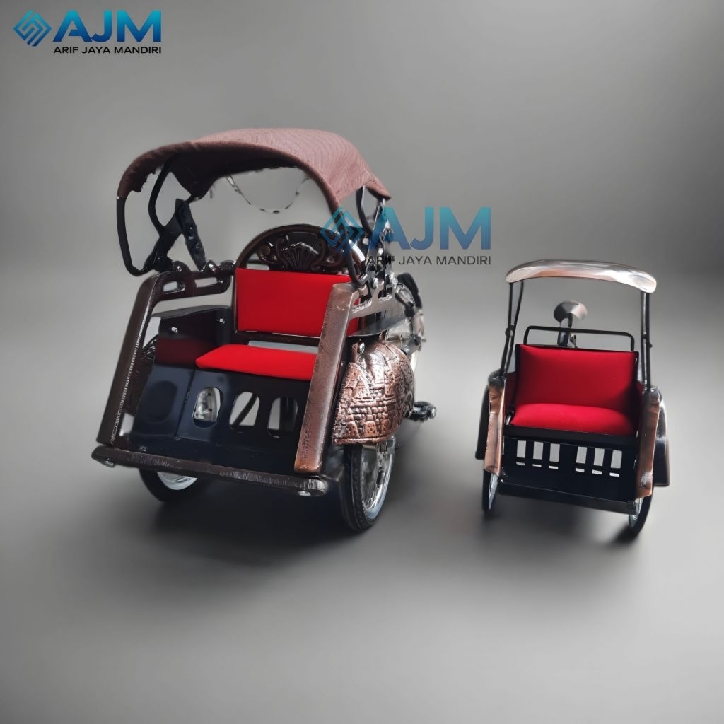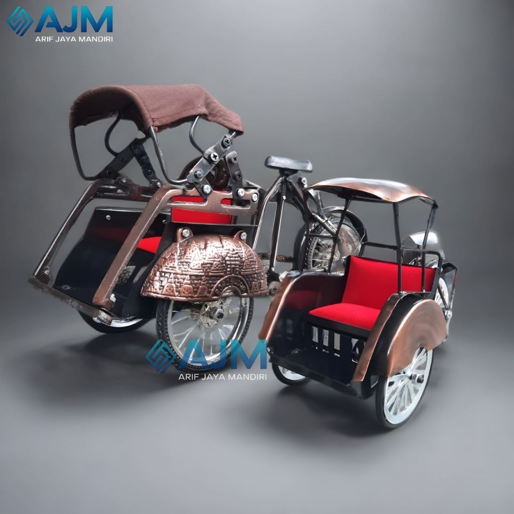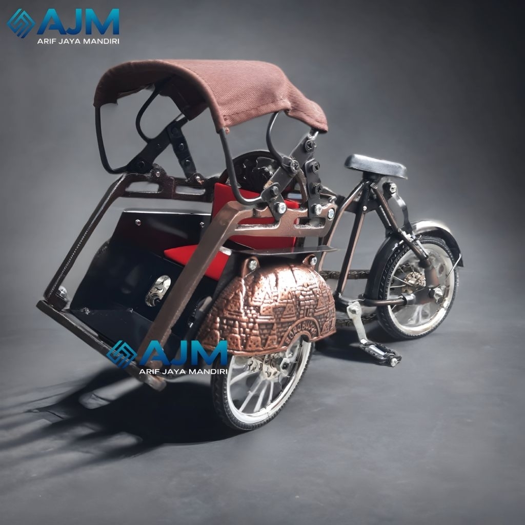 Miniatur becak pajangan ruang tamu diecast becak replika becak