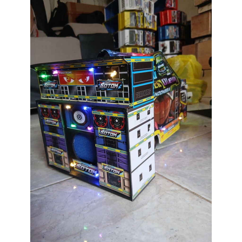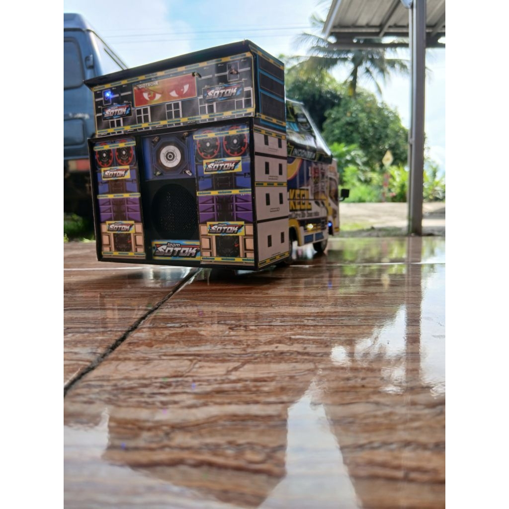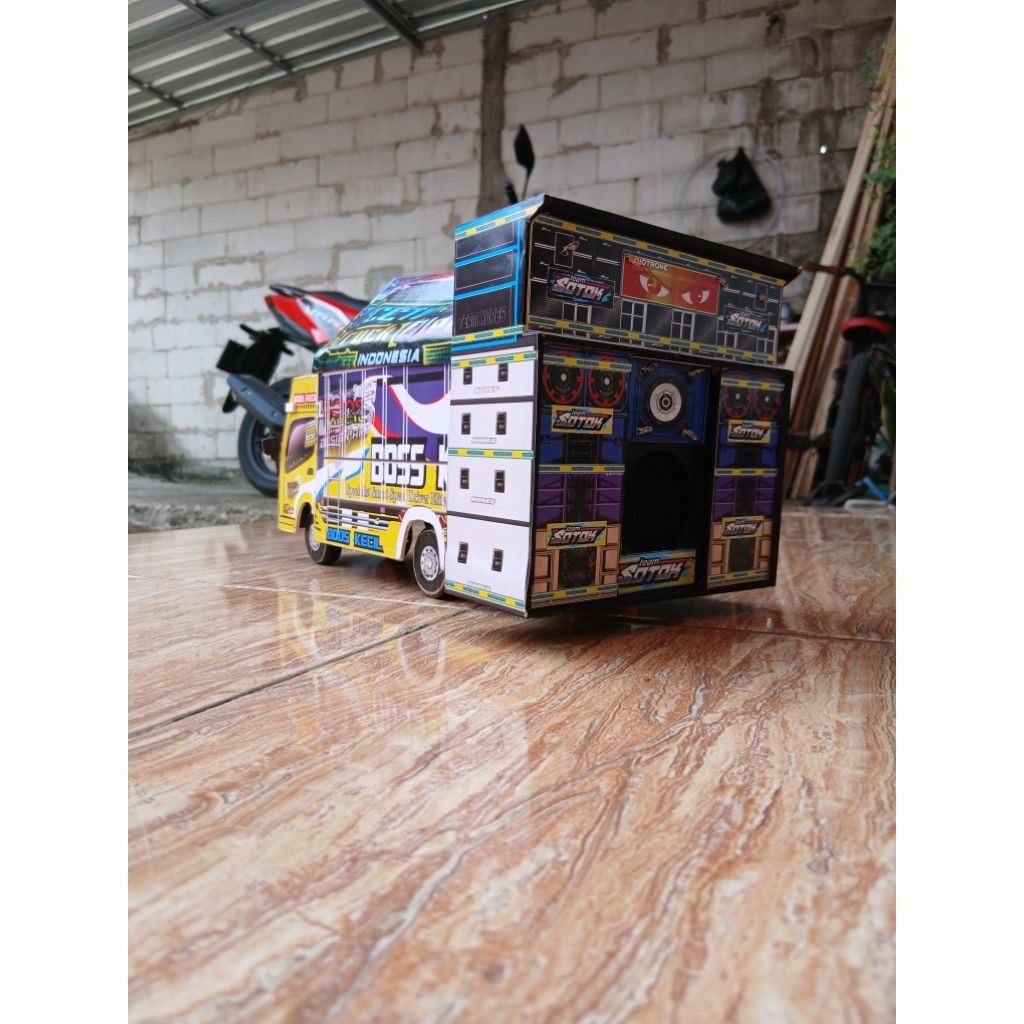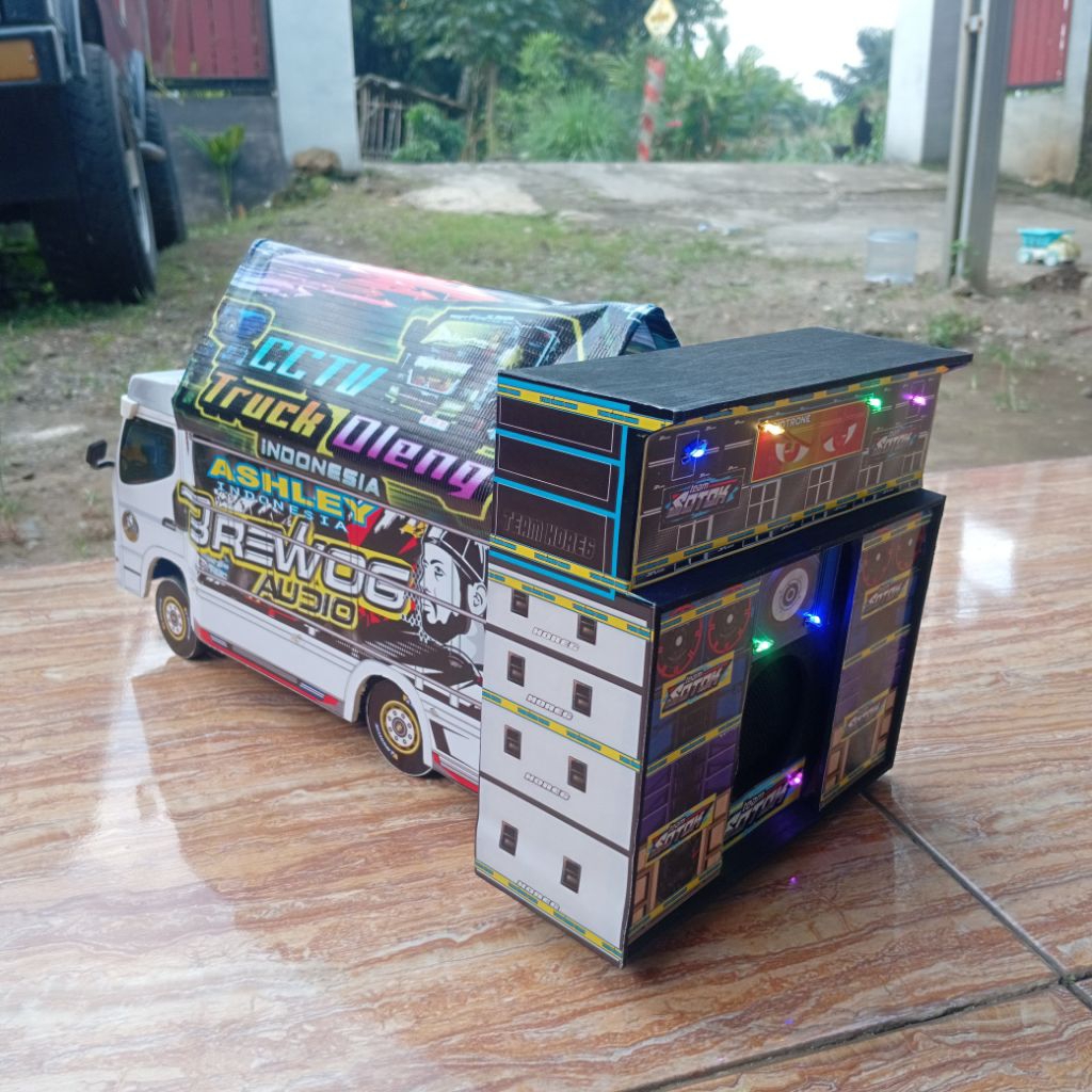 Miniatur truk oleng sound system bluetooth full lampu & terpal