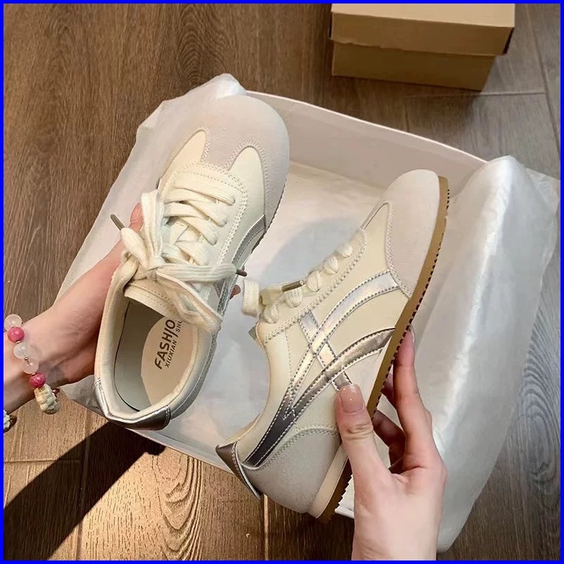 Shoevo Sepatu Kasual Kulit Datar Dengan Sol Lembut Anti Selip Putih Serbaguna St096