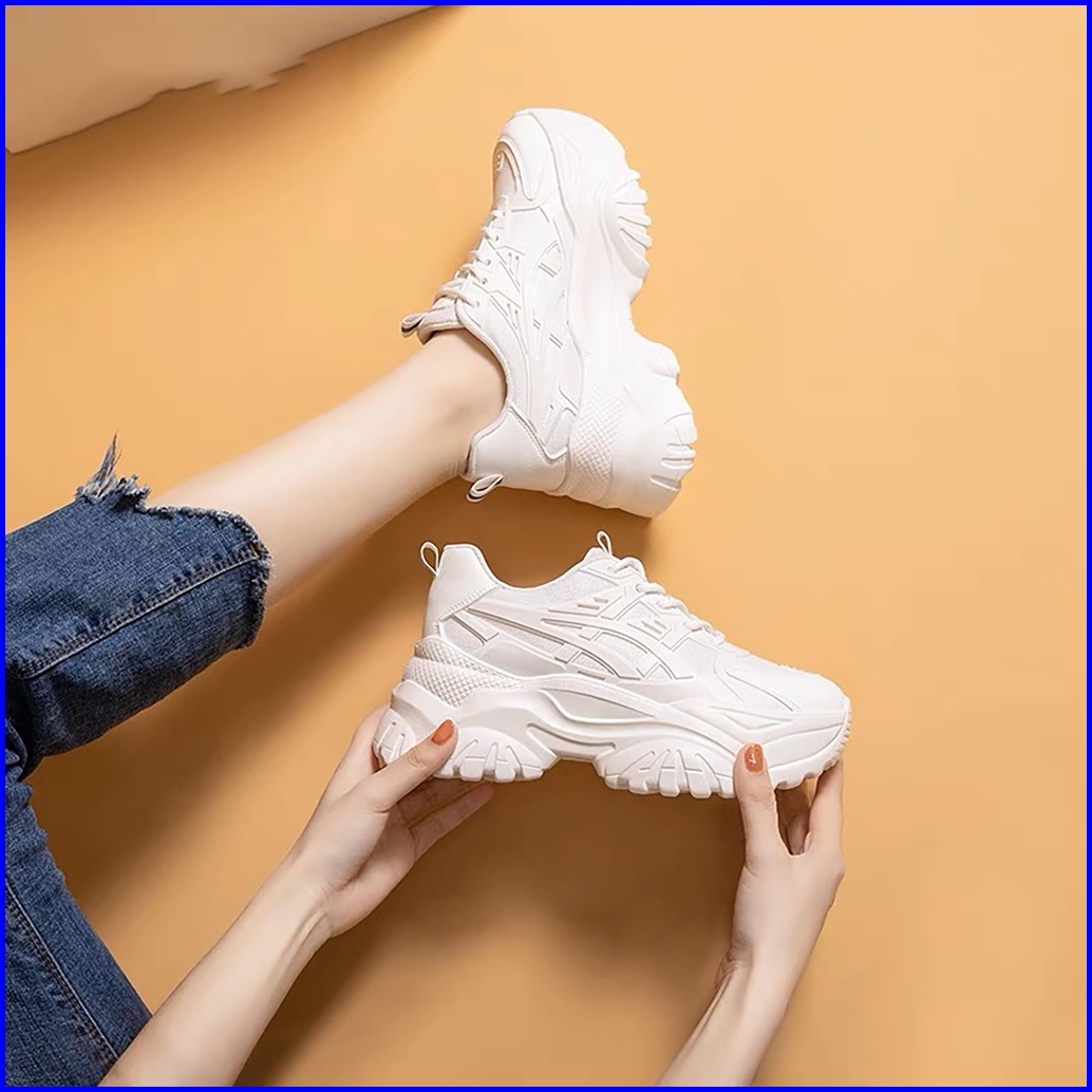 Shoevo Sneakers Wanita Woman Shoes Kasual Olahraga Sepatu Tinggi Tumit 5.3cm Hitam Putih Krem St040