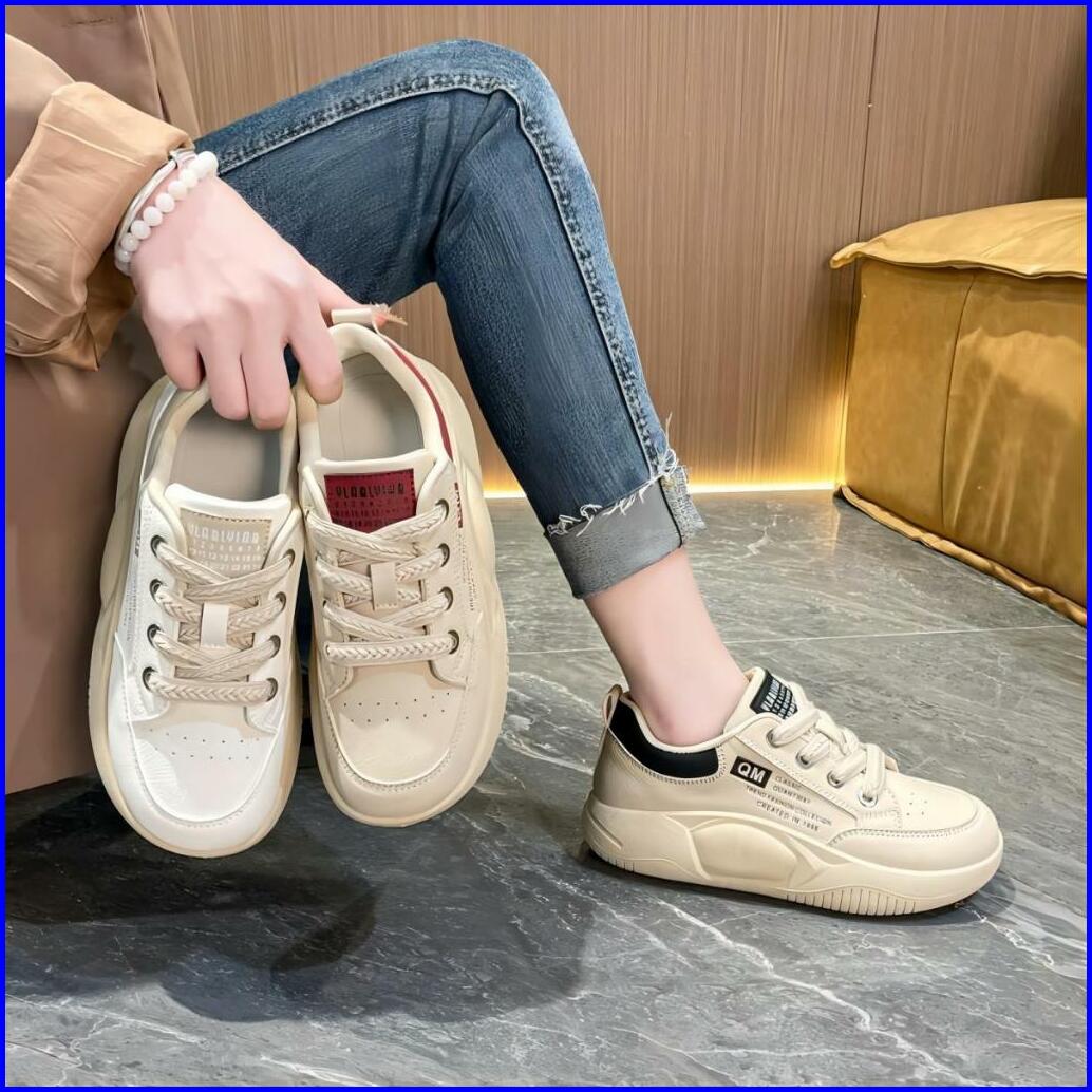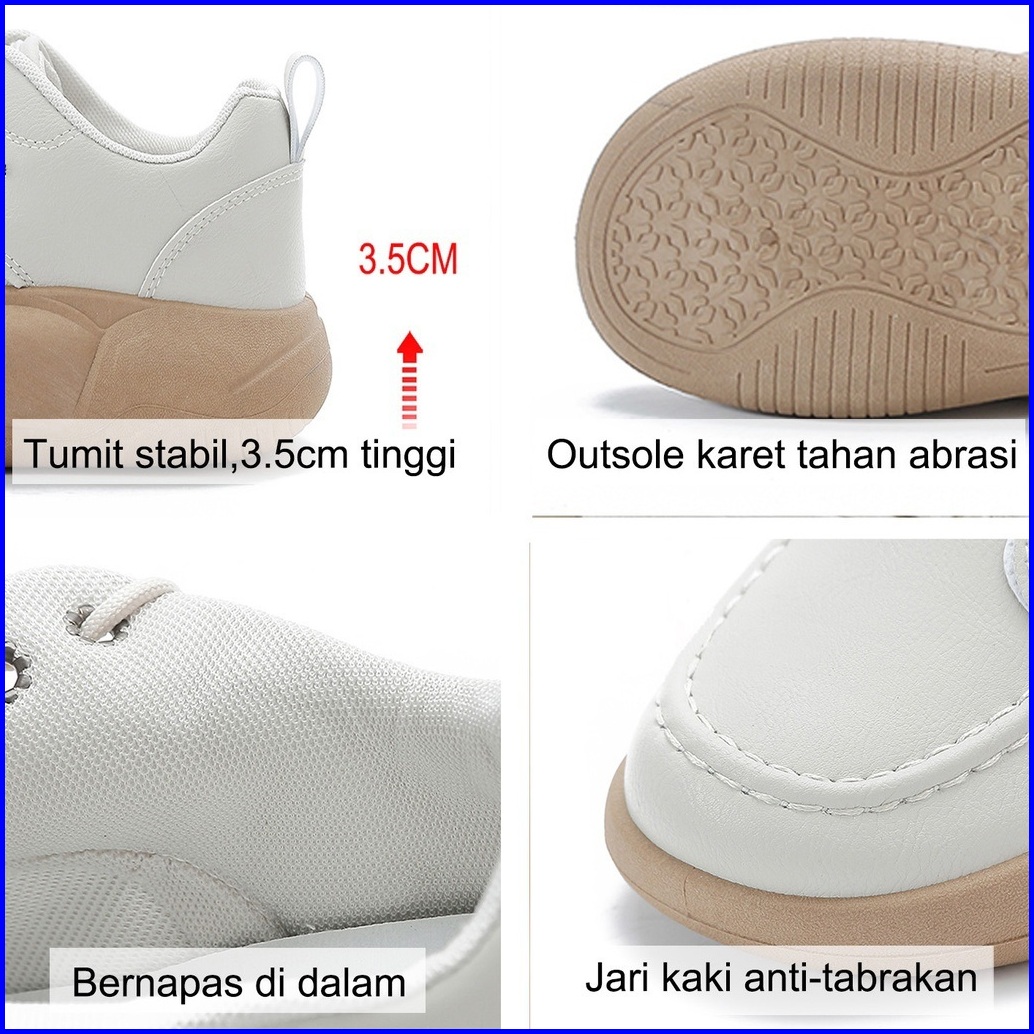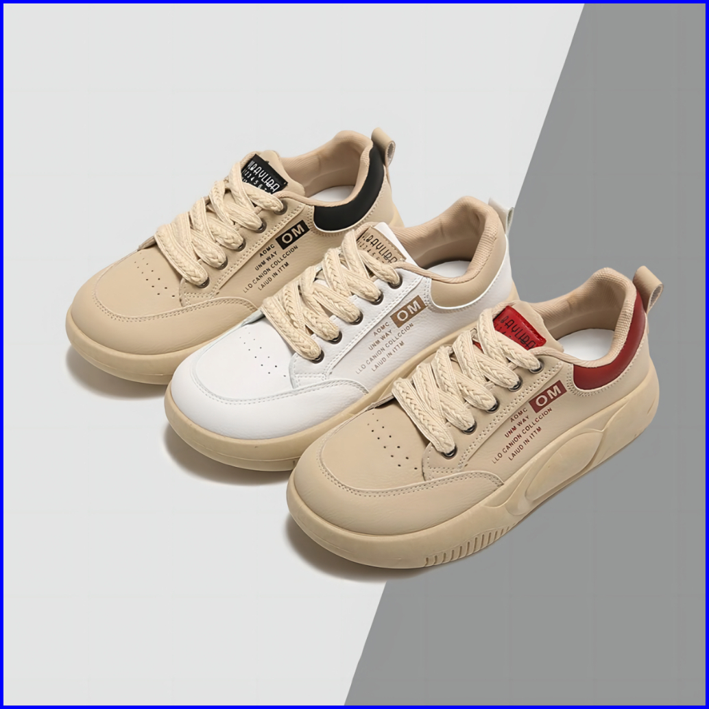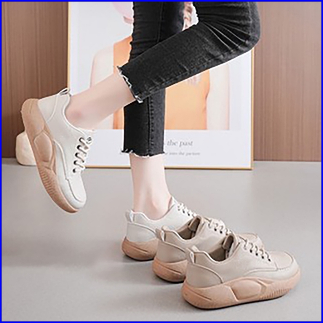 Shoevo Sneaker Wanita Women Shoes Korean Style Tumit Tinggi 3.5cm Krem Coklat St054