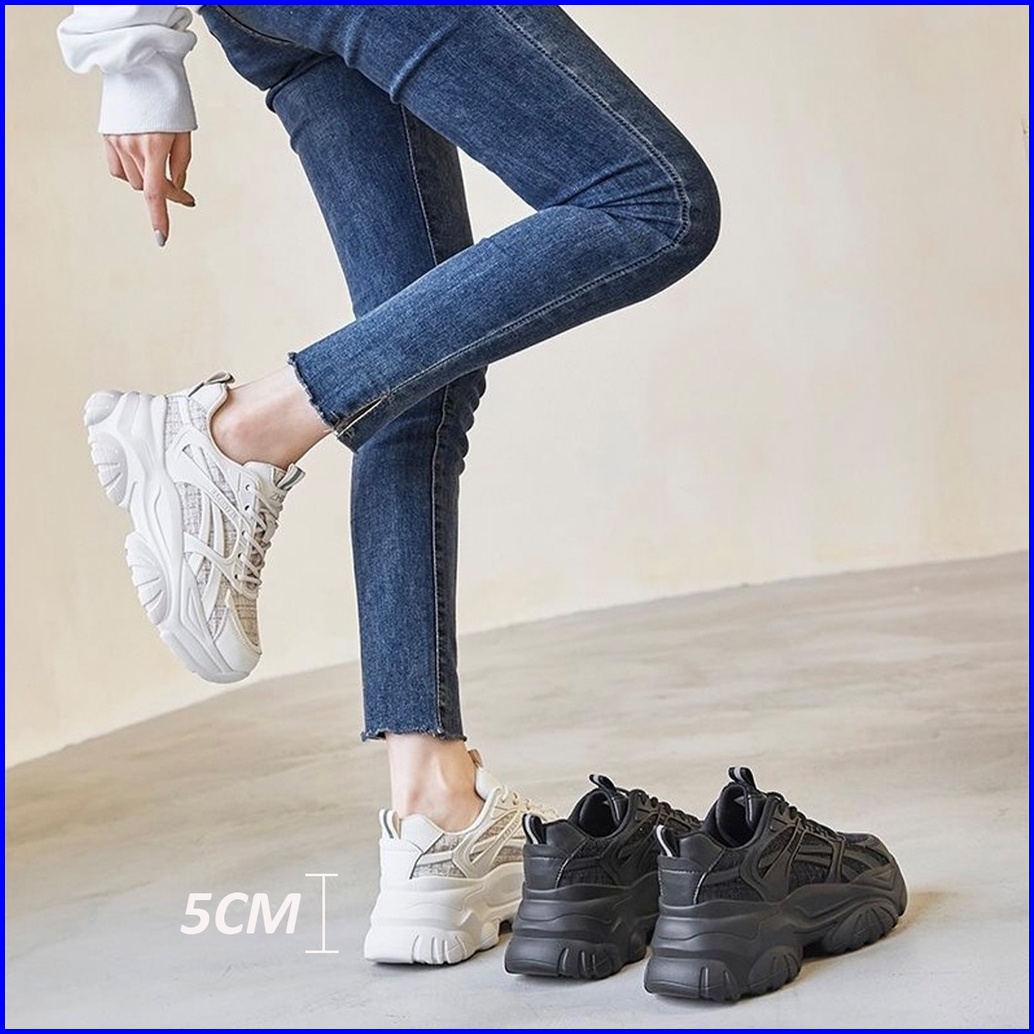 Shoevo Sneakers Wanita Woman Shoes Sepatu Olahraga Untuk Joging Sport Tinggi 5cm Hitam Beige St034