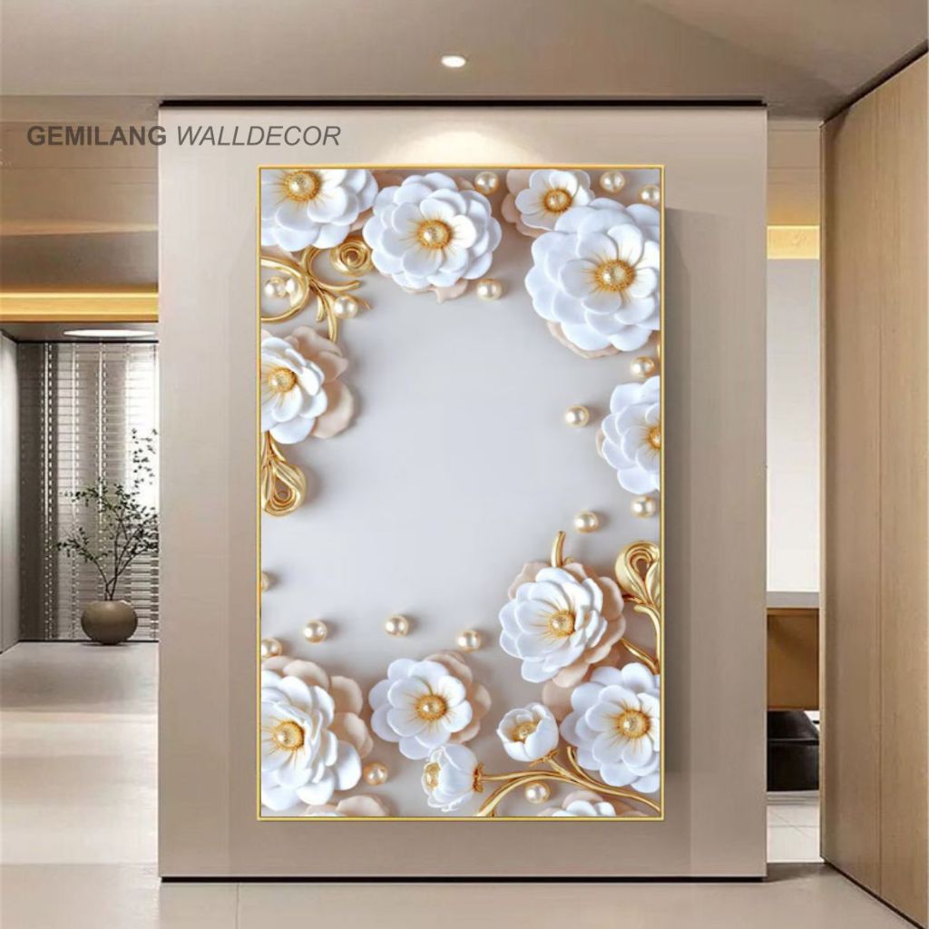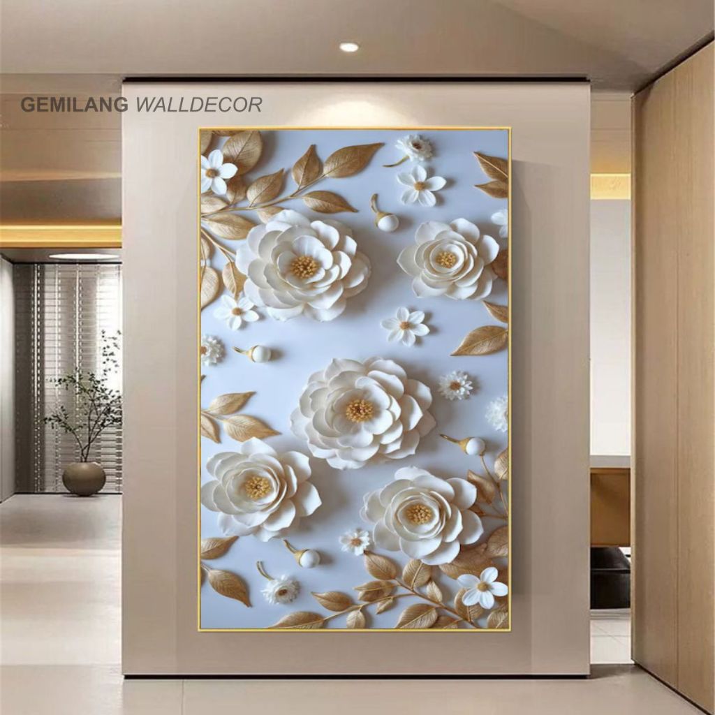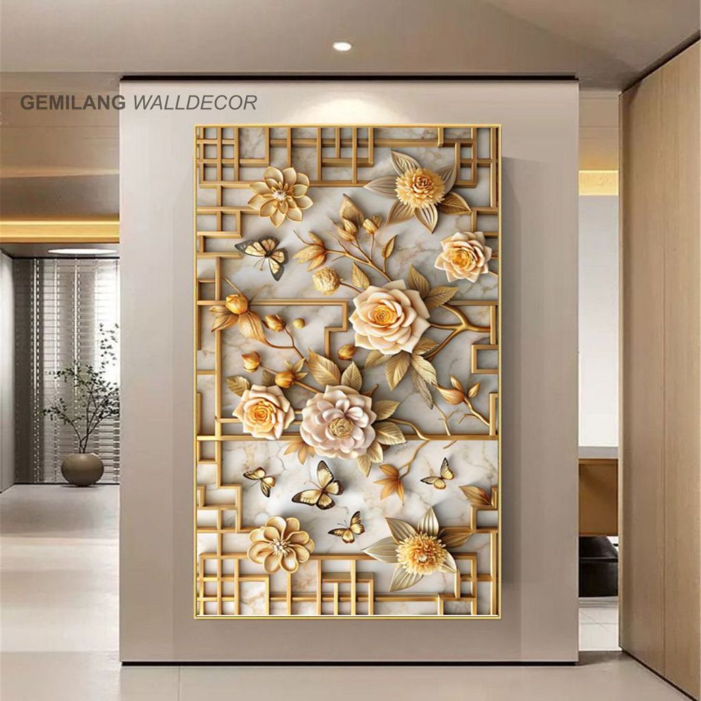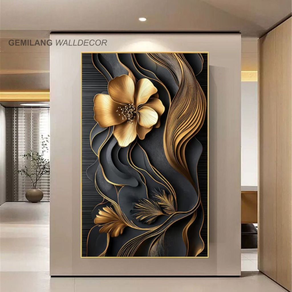 Wallpaper Dinding 3D Artistik Warna Gelap Desain Bunga Emas Elegan Bahan Sticker