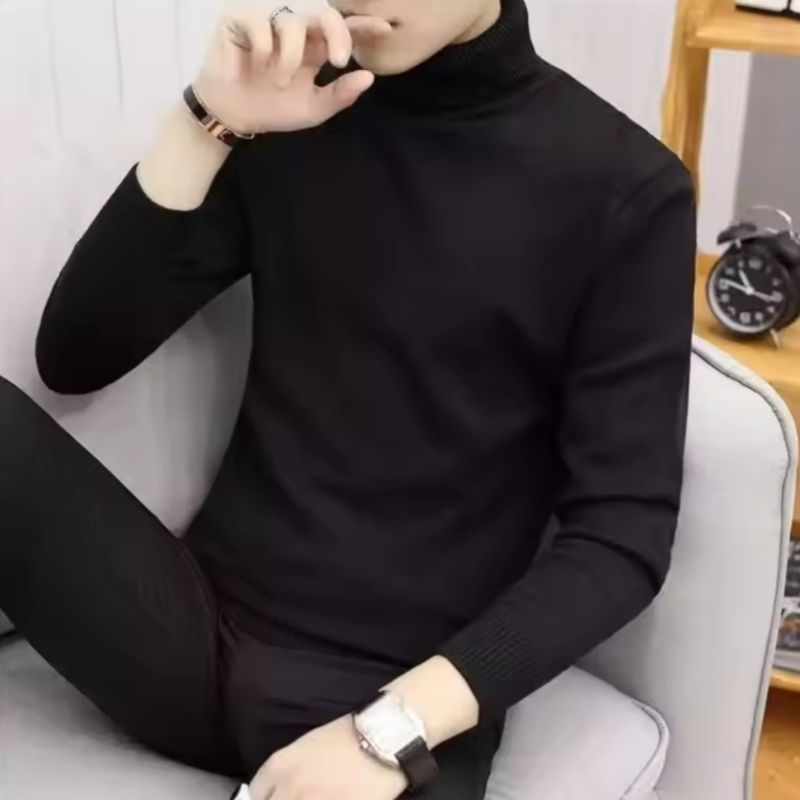 Turtleneck polos pria wanita kaos kerah tinggi lengan panjang