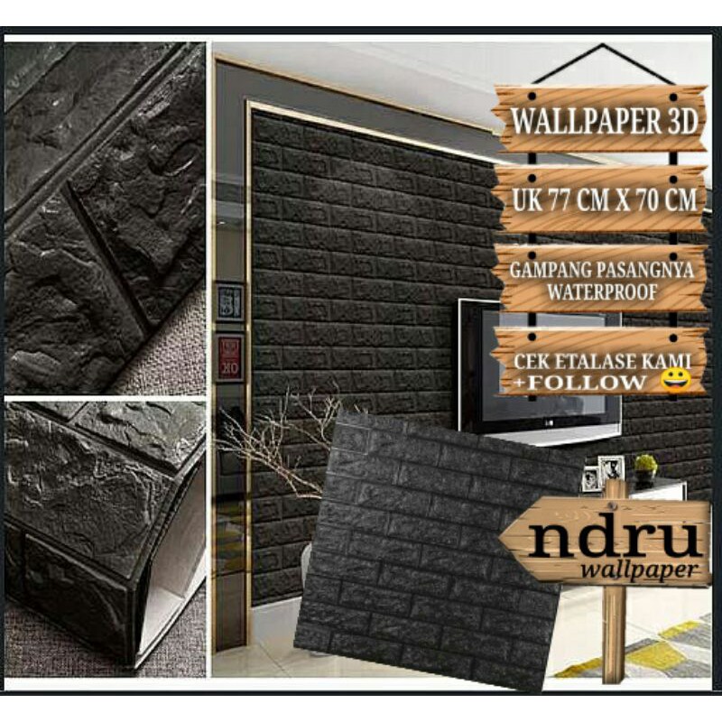 Grosir Murah 70 Cm X 77 Cm Wallpaper 3D Batu Bata Hitam Black Wallfoam Stiker Dinding Brick Foam