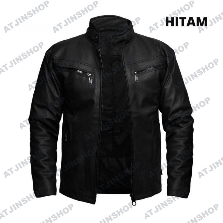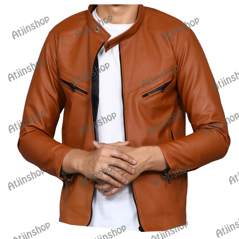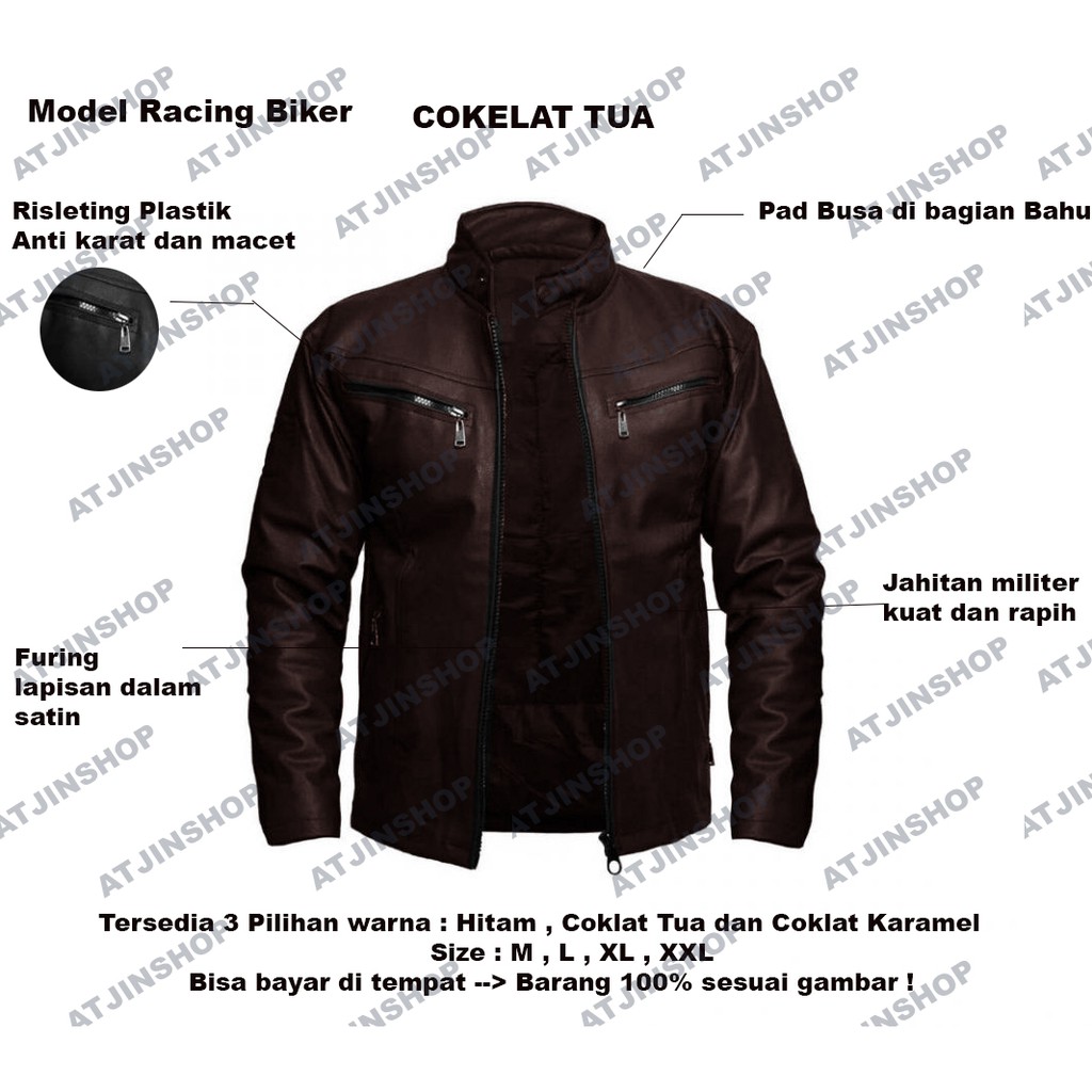 Jaket kulit Motor Pria Model Racing Bahan Ferrari [ Full Black dan Full Brown]