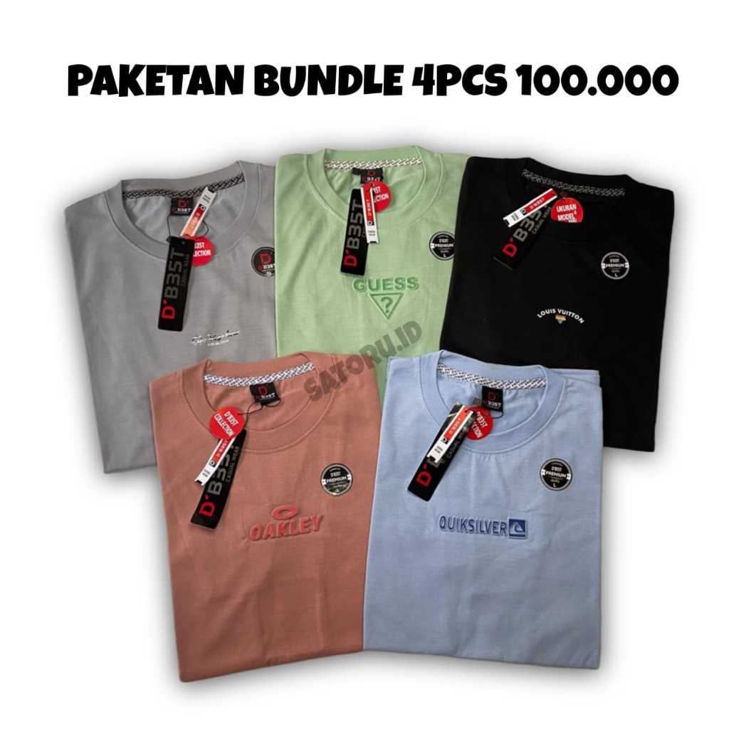 100RB 5PCS Kaos Branded Distro Pria Wanita Semi Katun 24s Size M L XL=XXL Jumbo PE mixU