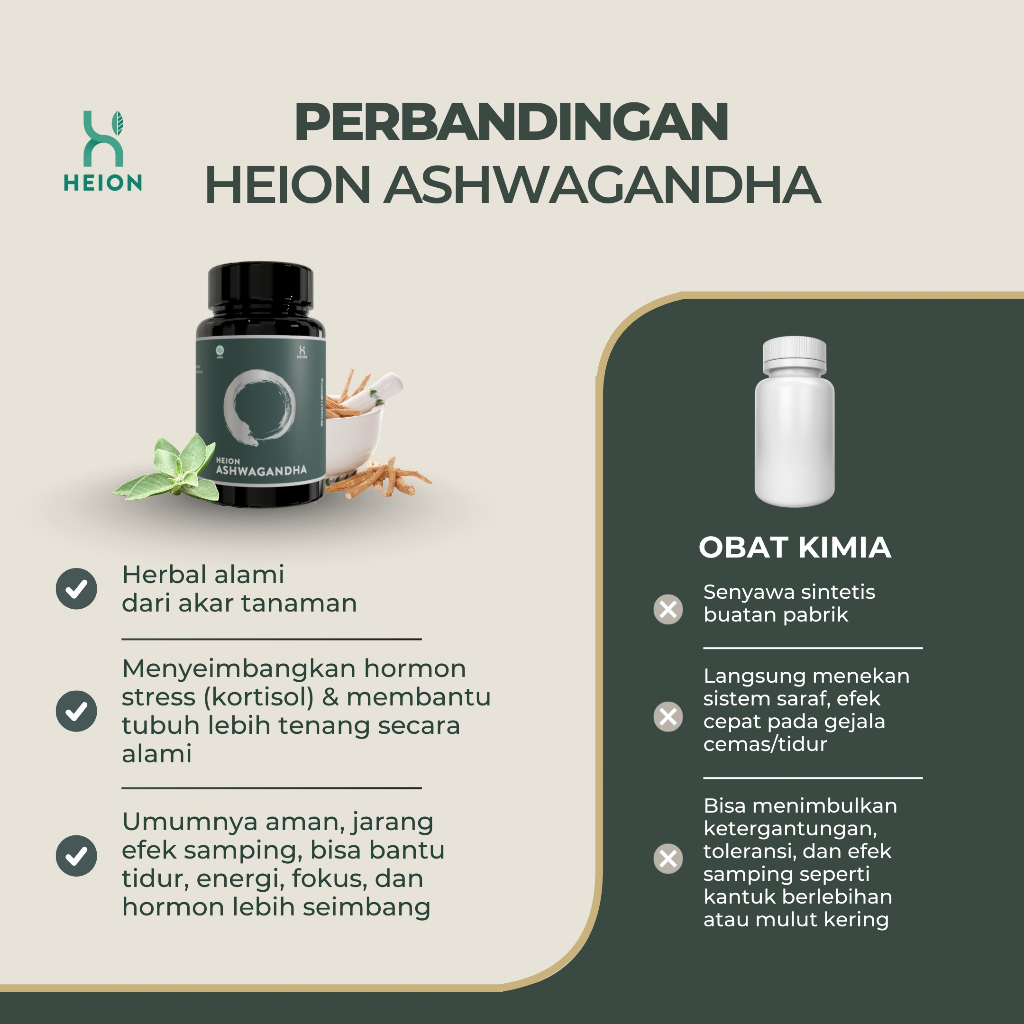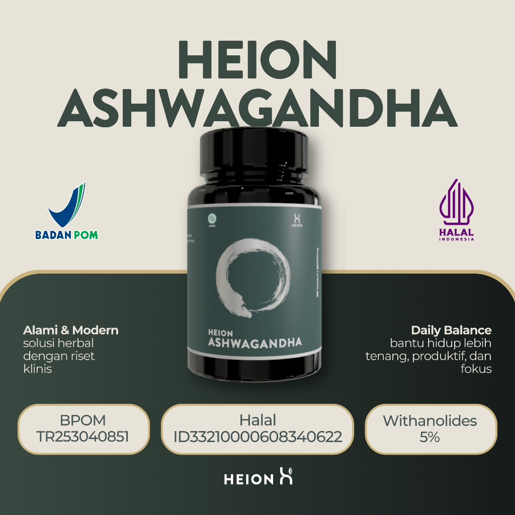 HEION Ashwagandha + 90 Kapsul - SUPLEMENT KESEHATAN MAKANAN ASHWAGANDA EXTRACT @500mg BPOM