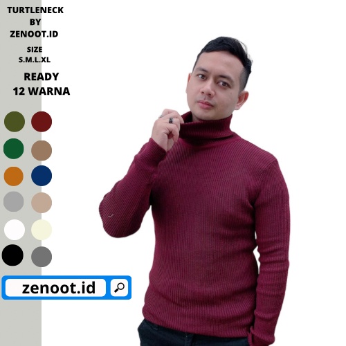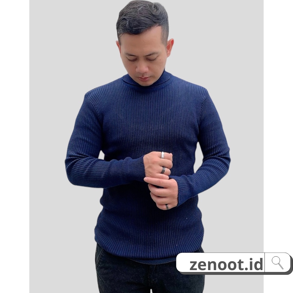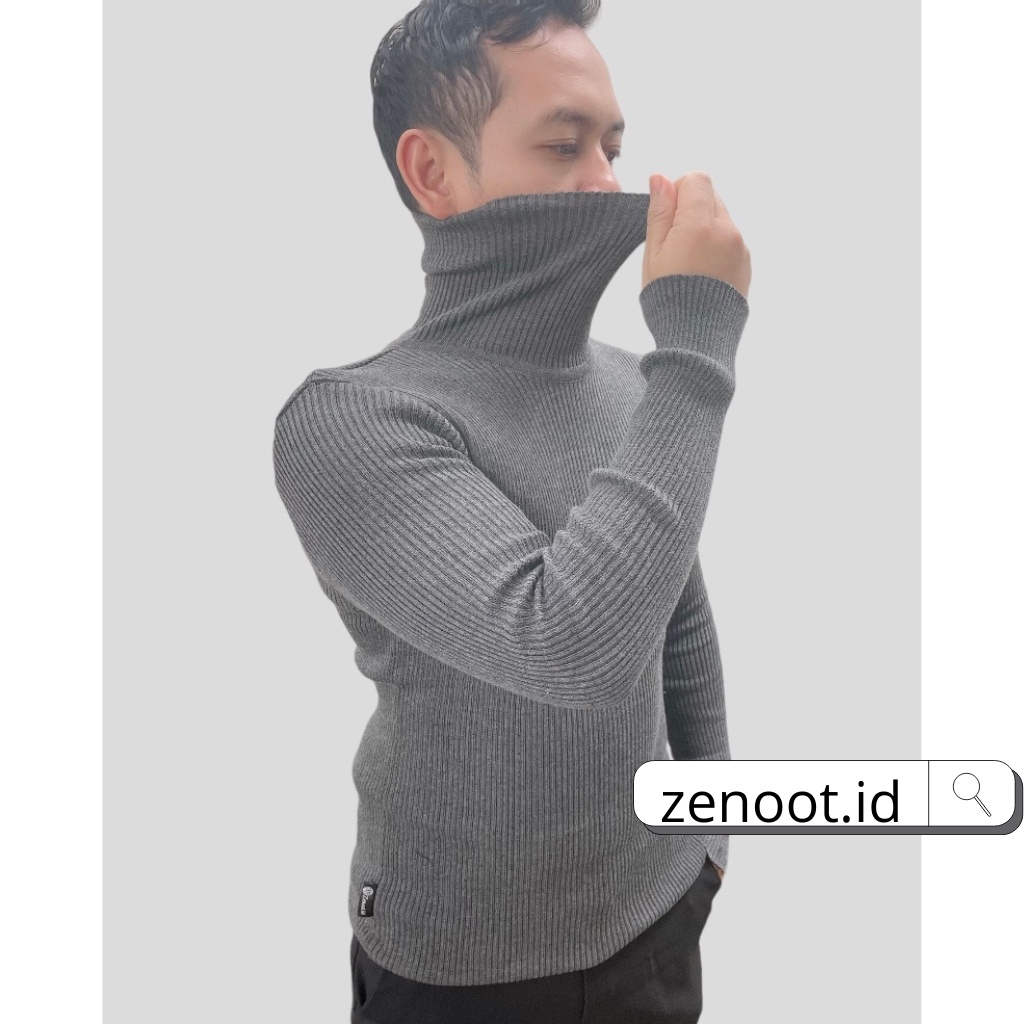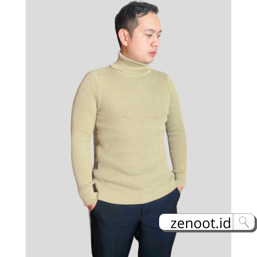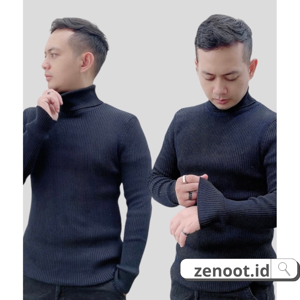 ZENOOT Kaos Rajut Turtle Neck Pria Gaya Kasual Korea - Sweater Leher Tinggi Polos Hangat