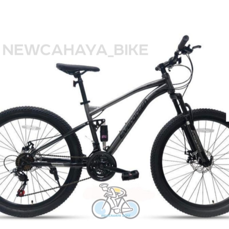 SEPEDA GUNUNG 275 INCH MTB EVERGREEN FULLSUS & ELEMENT HIDROLIK D3W4SA FRAME ALLOY REM CAKRAM HIGH QUALITY SNI NEW