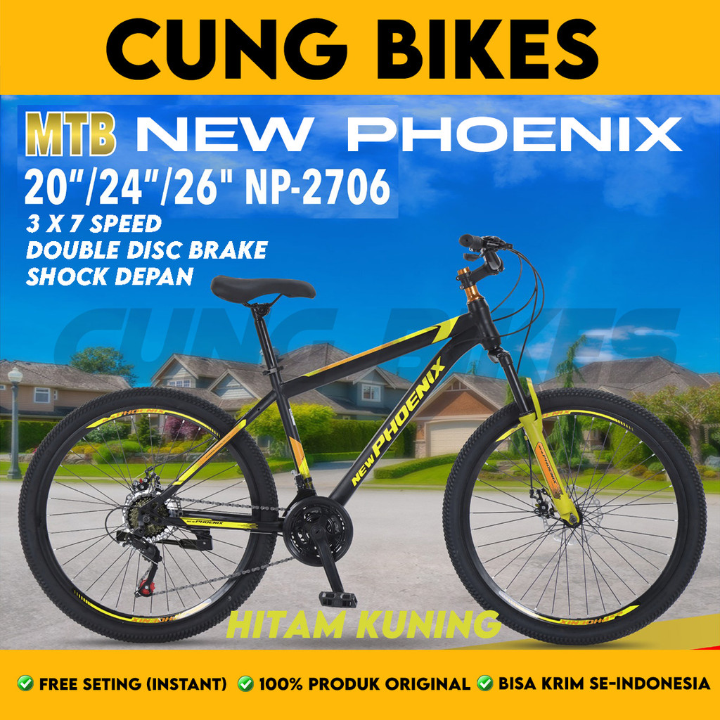 SEPEDA GUNUNG MTB UKURAN 20 24 & 26 PHOENIX 2706 FRAME INNER CABLE 21 SPEED REM CAKRAM