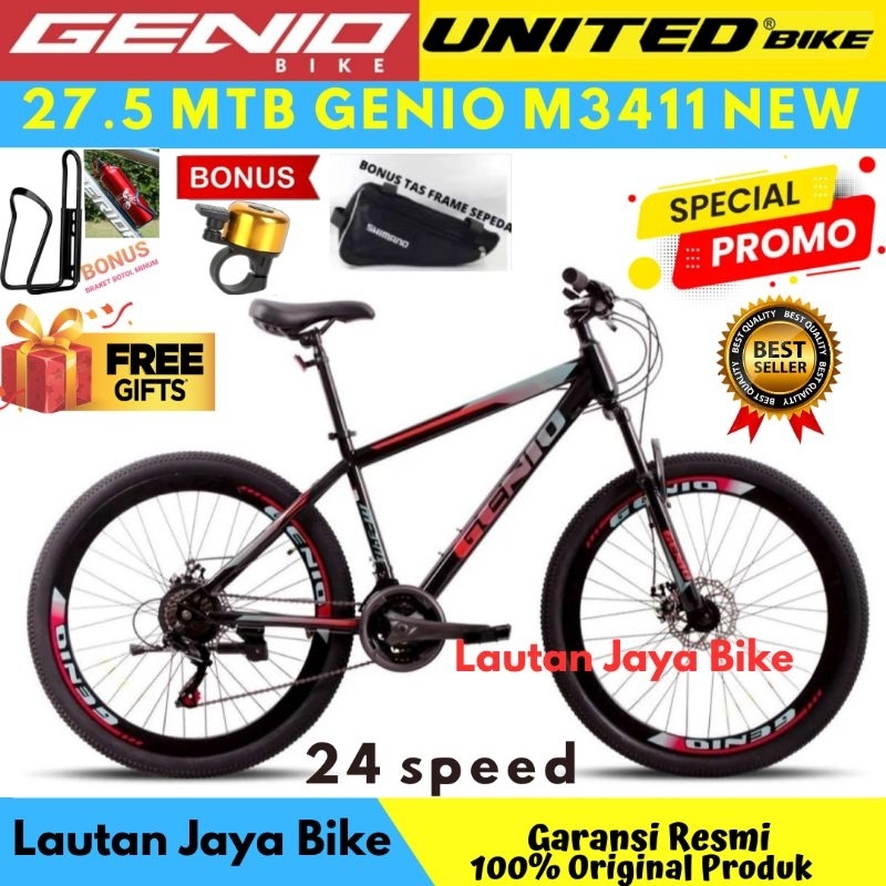 SEPEDA GUNUNG MTB 275 GENIO M3411 24 SPEED REM DISCBRAKE TERBARU