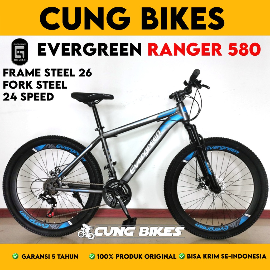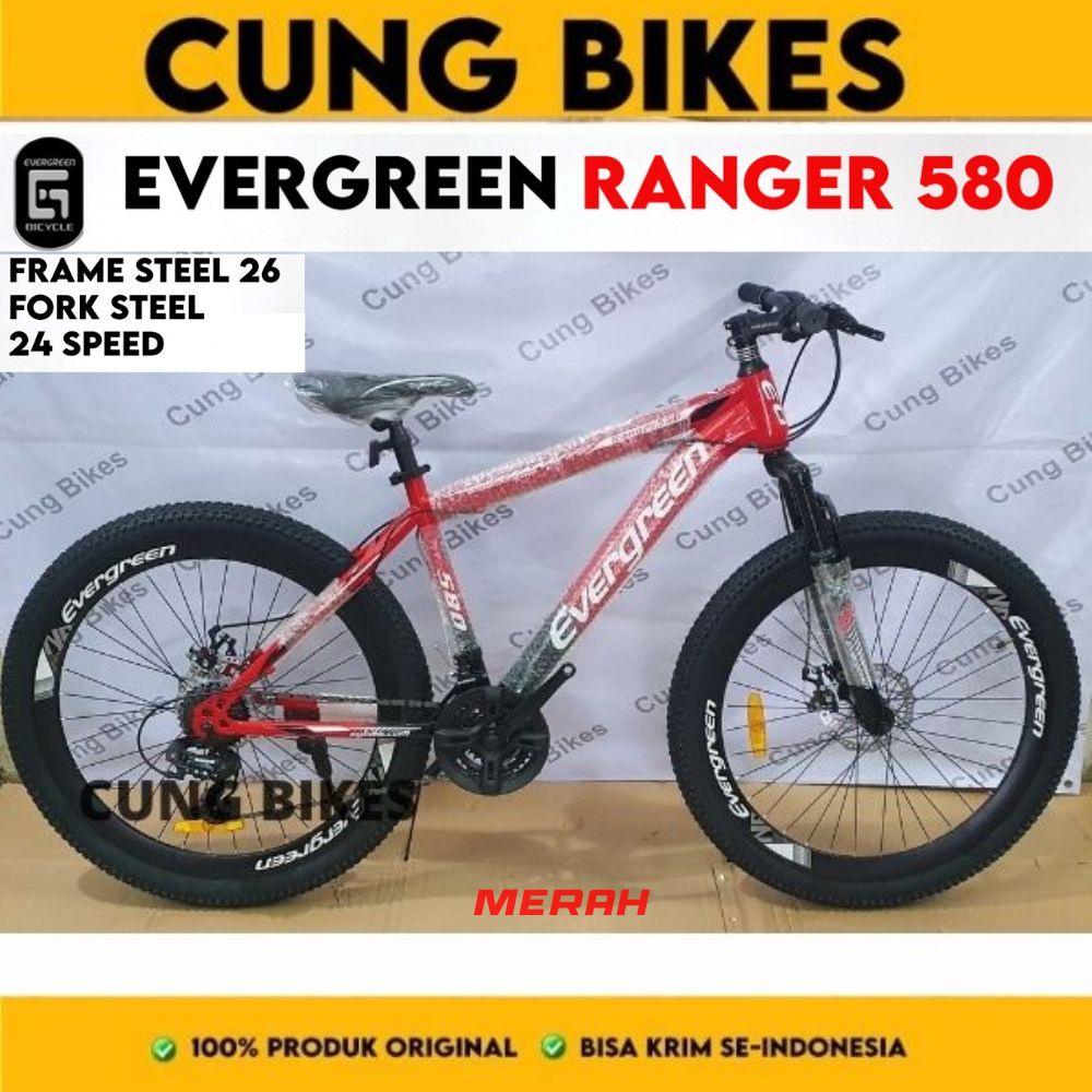 SEPEDA GUNUNG 26 INCH MTB EVERGREEN RANGER 580 3 X 8 SPEED MECHANICAL DISC BRAKE