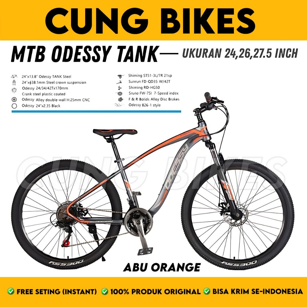 SEPEDA GUNUNG ODESSY TANK UKURAN 24 26 275 INCH REM CAKRAM 21 SPEED