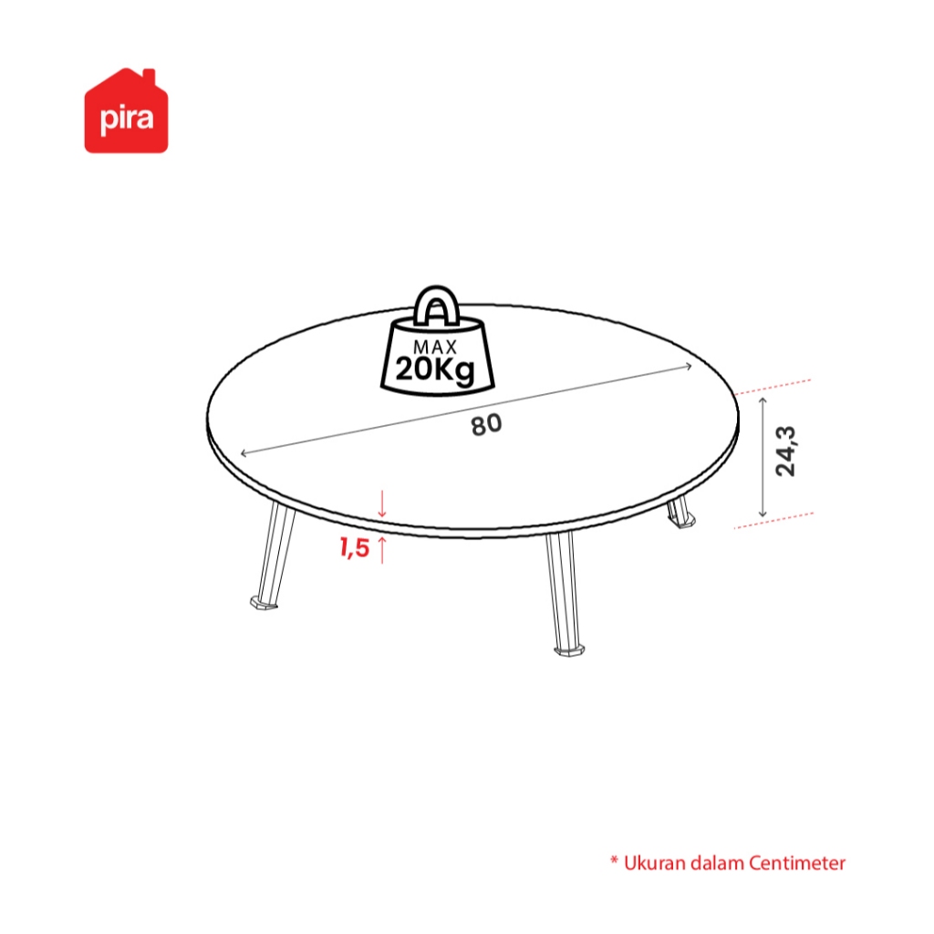 Pira - Kino Ct80 R Meja Tamu / Meja Lipat / Meja Lesehan / Meja Sudut / Meja Makan Lesehan