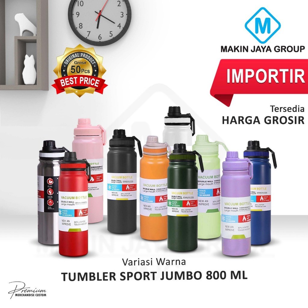 BOTOL MINUM TERMOS STAINLESS STEEL TUMBLER SPORT JUMBO 800ML MJG8055 FINS CUSTOM