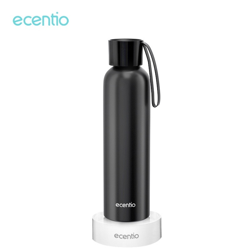 ECENTIO BOTOL MINUM TUMBLER OLAHRAGA SPORT TUMBLER BOTOL AIR 650ML ANTI TUMPAH BLACK ALUMINUM BOTTLE