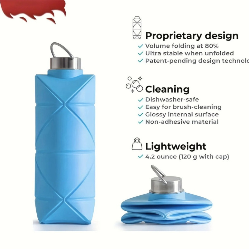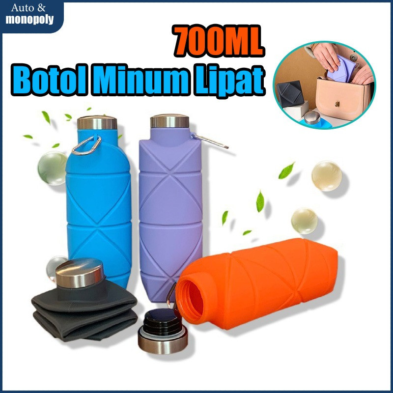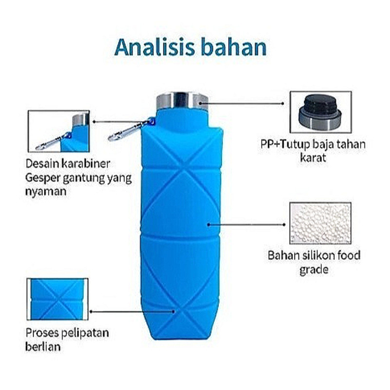 BOTOL MINUM LIPAT 700ML SILICONE PORTABLE + HOOK PRAKTIS DIBAWA TRAVEL & OLAHRAGA