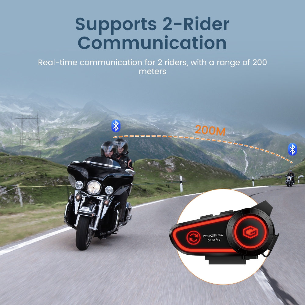Intercom helm waterproof Gearelec DK02 Bluetooth Headset BT5.2 IPX7 TahanAir 50-200M 2 Riders Connected 2800mAh