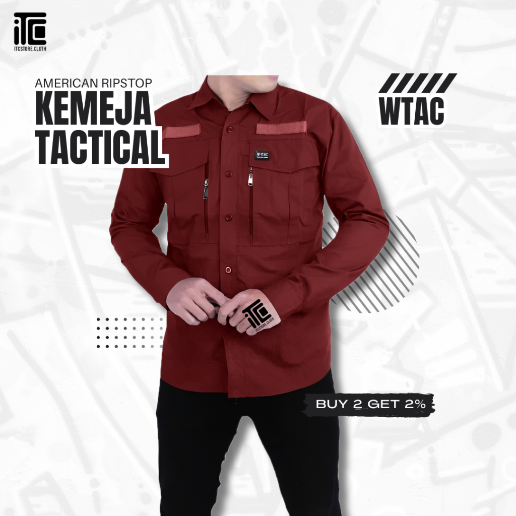 Kemeja Tactical Lapangan door W Tac Lengan Panjang Atasan Kerja PDL PDH Bahan Ripstop Premium