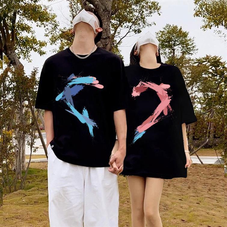 Ssmy DT222 Kaos Couple Love Blue Merah Sablon Desain Pria Women Unisex Fashion Baju Pakaian Katun