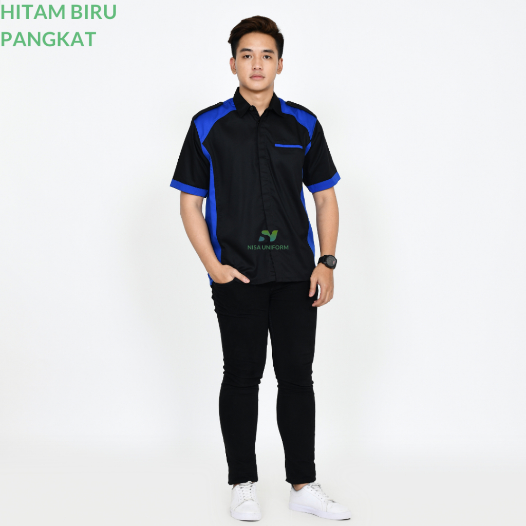 kemeja tangan pendek murah seragam kerja custom bordir baju karyawan kantor baju kombinasi pendek