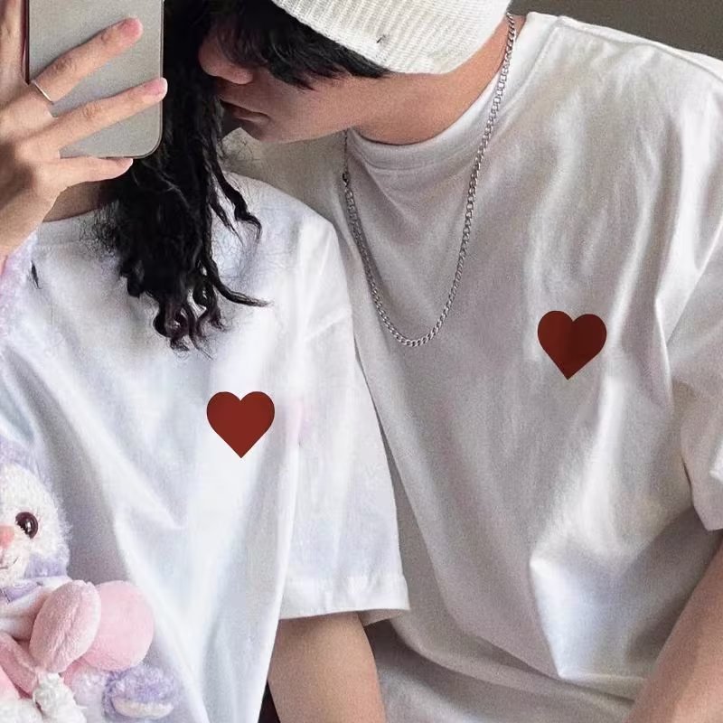 Ssmy DT350 Love Merah Polos Pasangan Sablon Baju Kaos Oversize Katun Premium 100 PERSEN