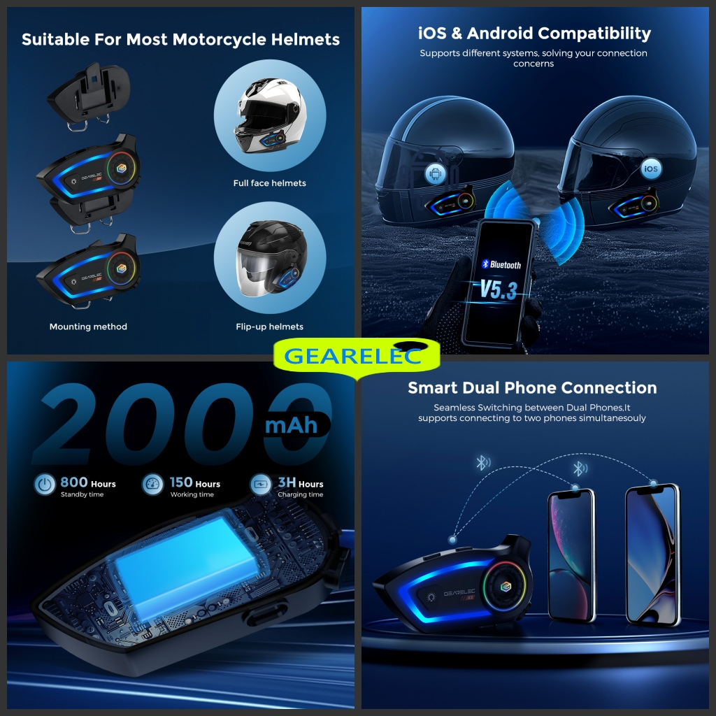 Intercom helm waterproof GEARELEC X2 Plus Headset 2 Riders 100m Support Music Sharing While In