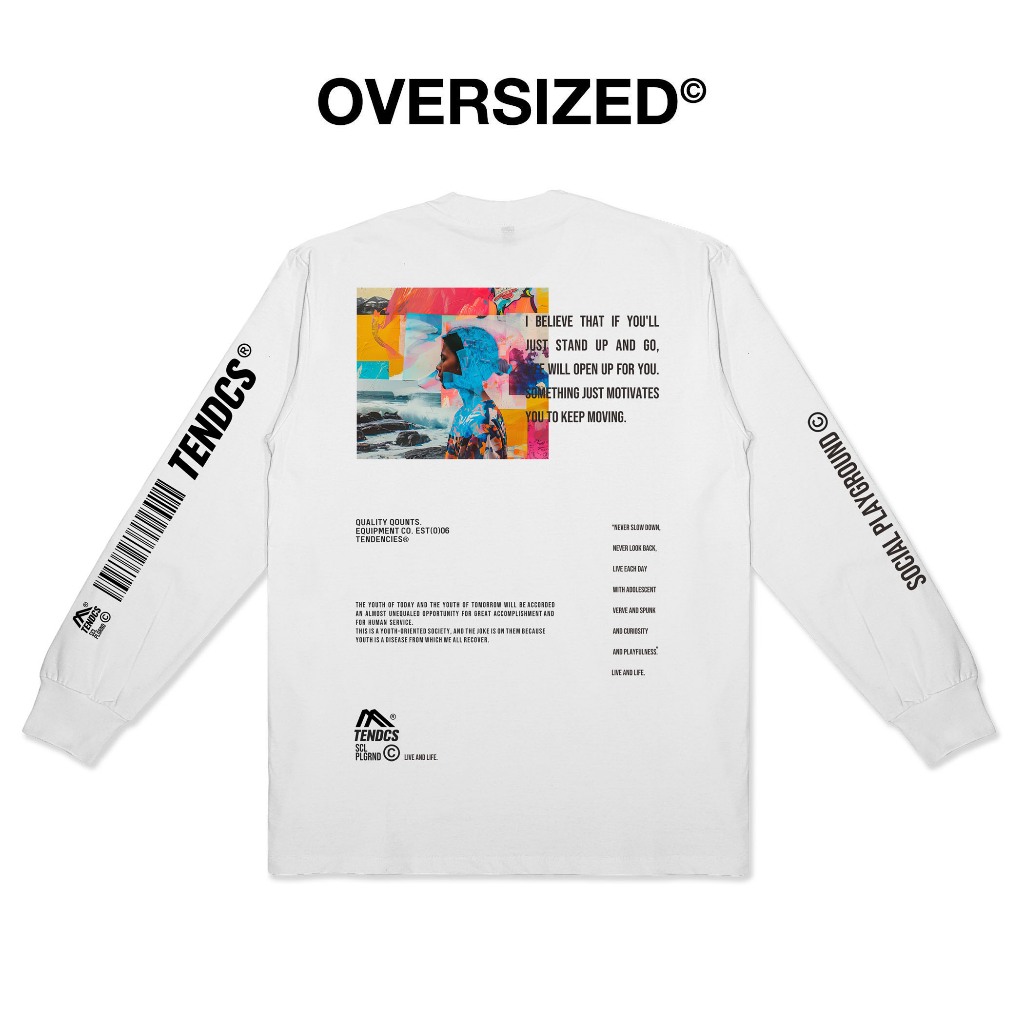 TENDENCIES Tshirt Long Sleeve Oversized Inside White