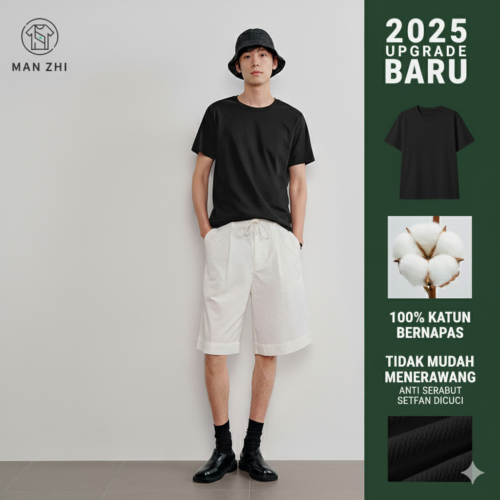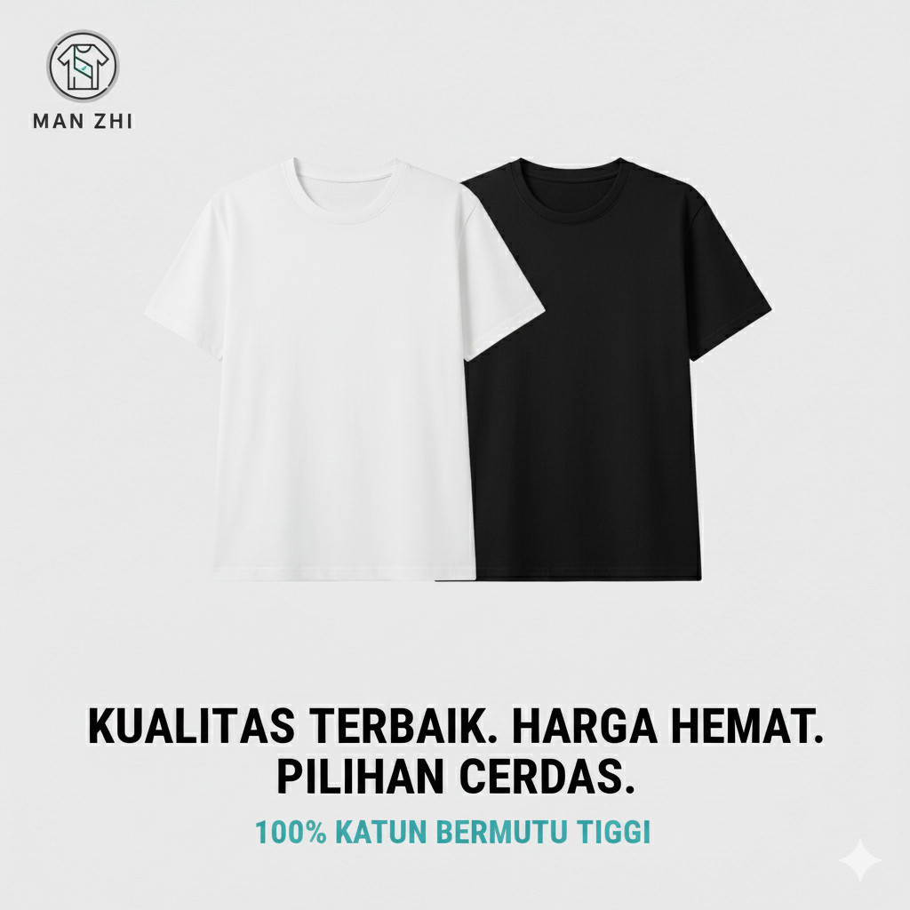 Basic T Shirt Katun Murni Nyaman Adem Hitam Putih