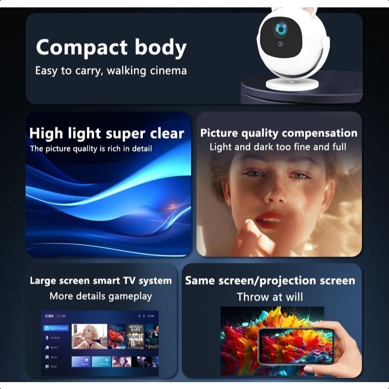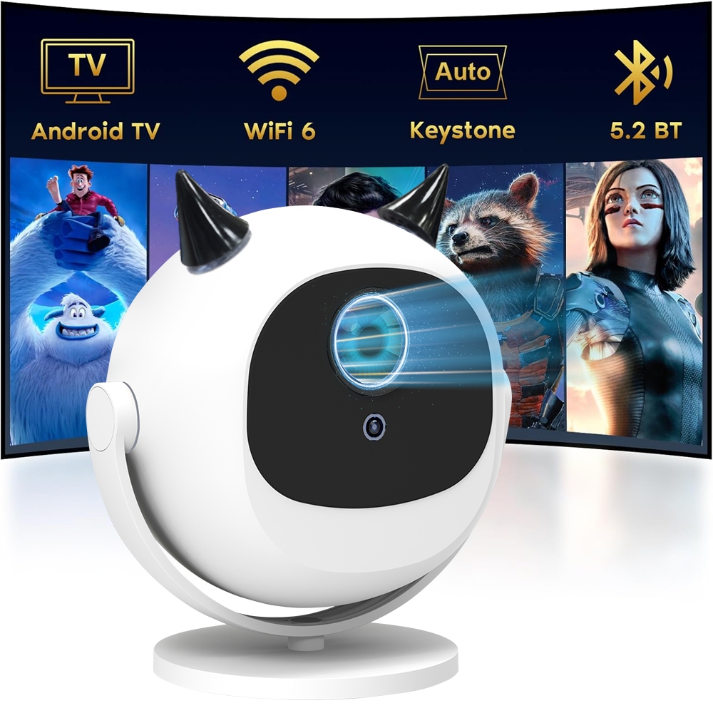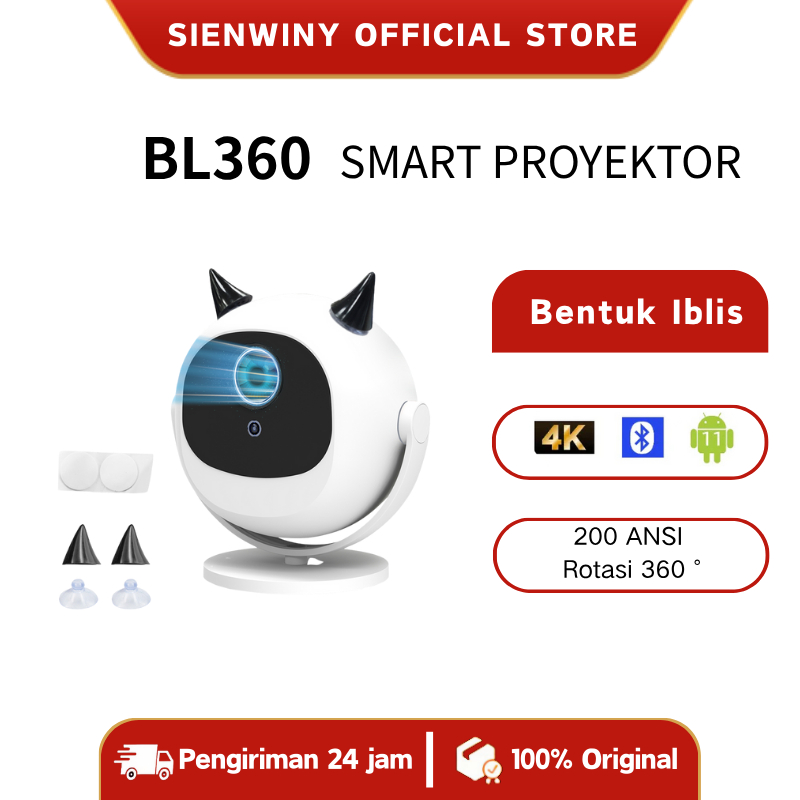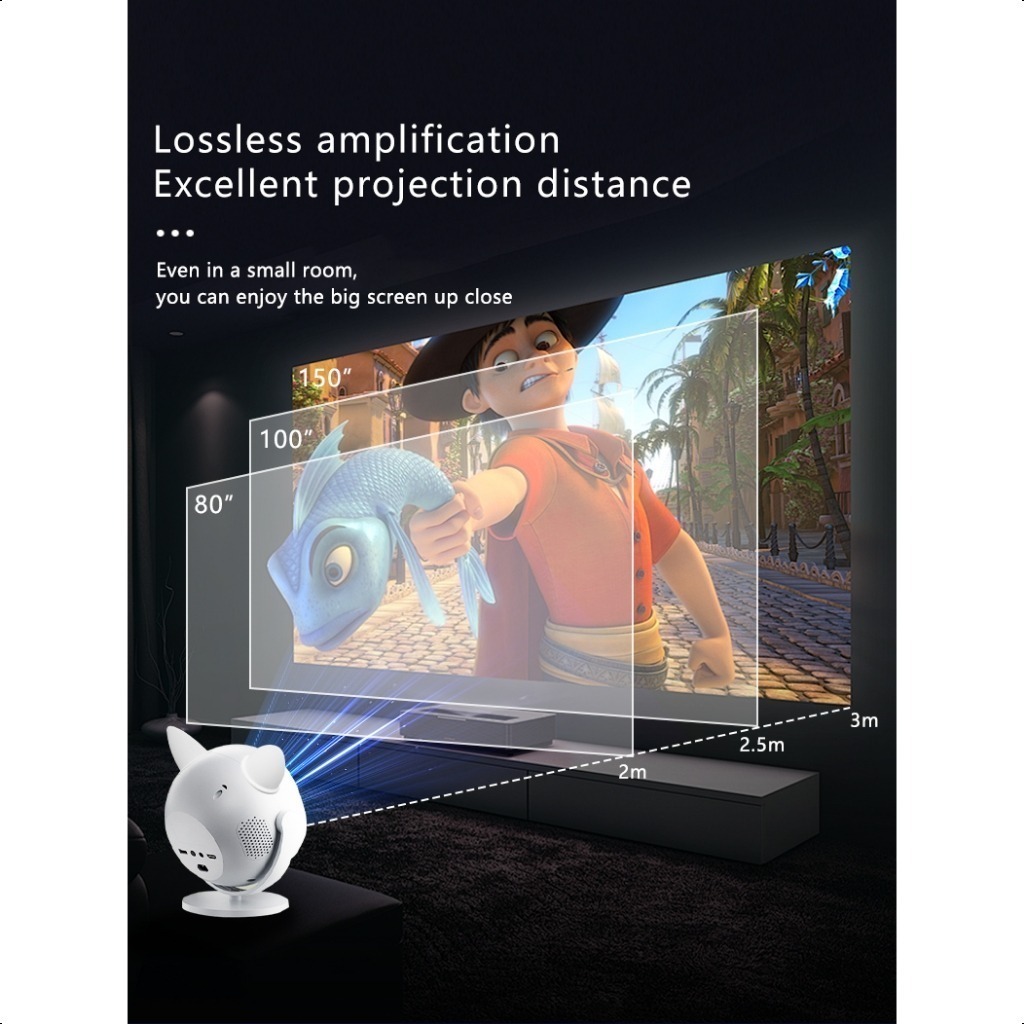 【SIENWINY】BL360 Proyektor Mini super lucu kucing telinga gaya Android 11.0 Bluetooth4.3, 200ANSI Rotasi 360°