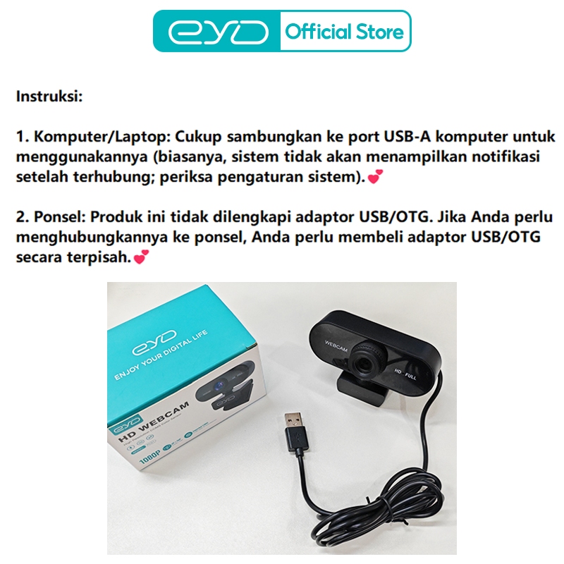 EYD Webcam Laptop USB Camera PC Full HD 1080P with 360 Degree Rotation and Microphone Live Webcam Zoom Conference Camera PC01
