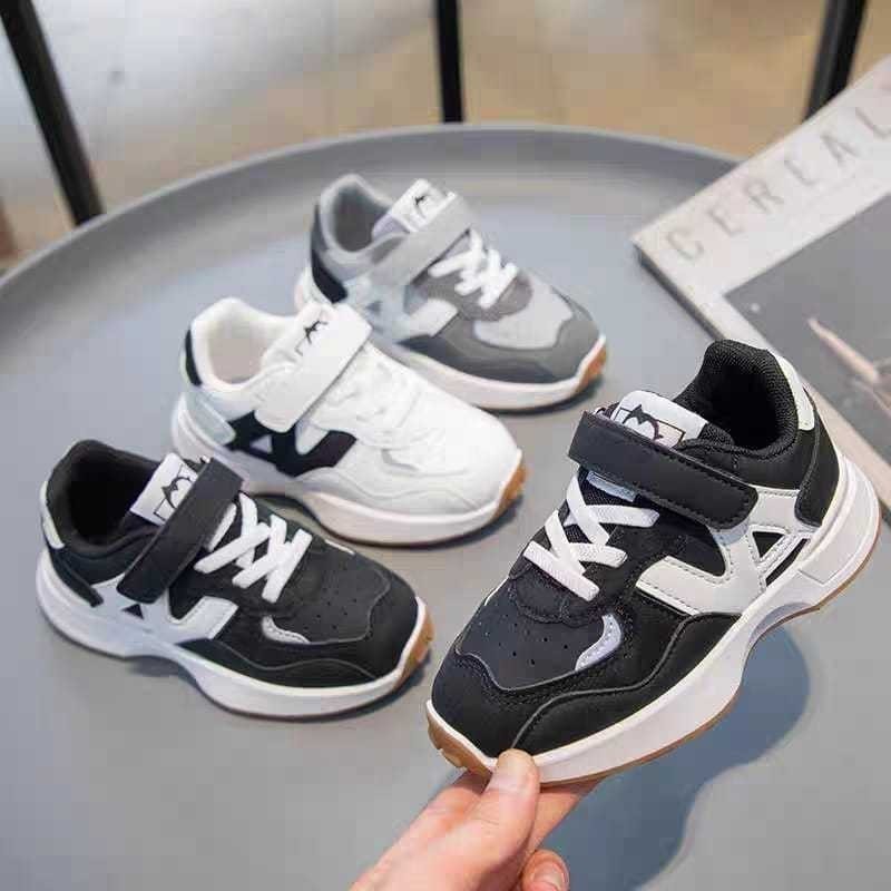 Sepatu Sneakers Anak Laki Casual Korean Style Import Hitam Abu Putih Sneaker Korea Anak Cowok Velcro terlaris 2026 ori
