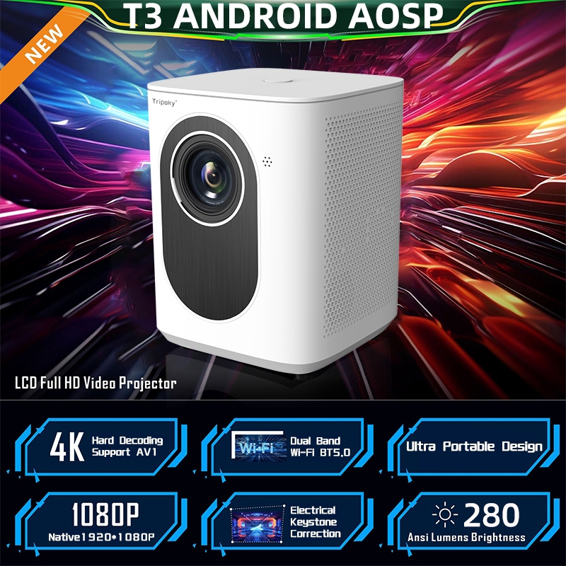 Tripsky T3 Proyektor Android 280ANSI 6000 Lumens 4K HD Dual band LCD Display proyektor mini Smart Projector