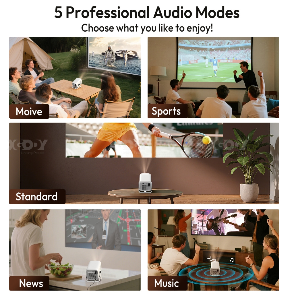 XGODY Gimbal N5 Smart Proyektor LCD - FHD 1080P-WhaleOs3.0 System-Voice Control-450ANSI-Dolby Audio