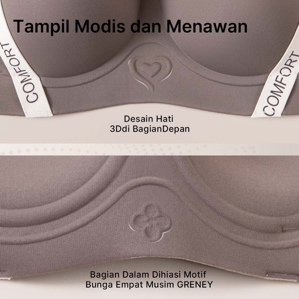 GRENEY-2PCS Bra Love Push Up 3D Cup Bulat 3D Penyangga Lembut W Mengumpul Tanpa Jejak bra push-up Penyangga Lembut W Cup 3D