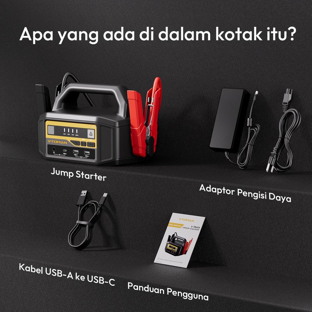 VTOMAN V-Truck Jumper Aki Mobil 12V & 24V Kapasitas 135Wh Jumper Aki Mobil Truck Jumper Aki Mobil Pickup dan Box