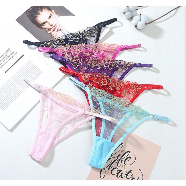 Celana Dalam Sexy Lace transparan G String Wanita Bordir Low Waist Thong Size Besar C2350