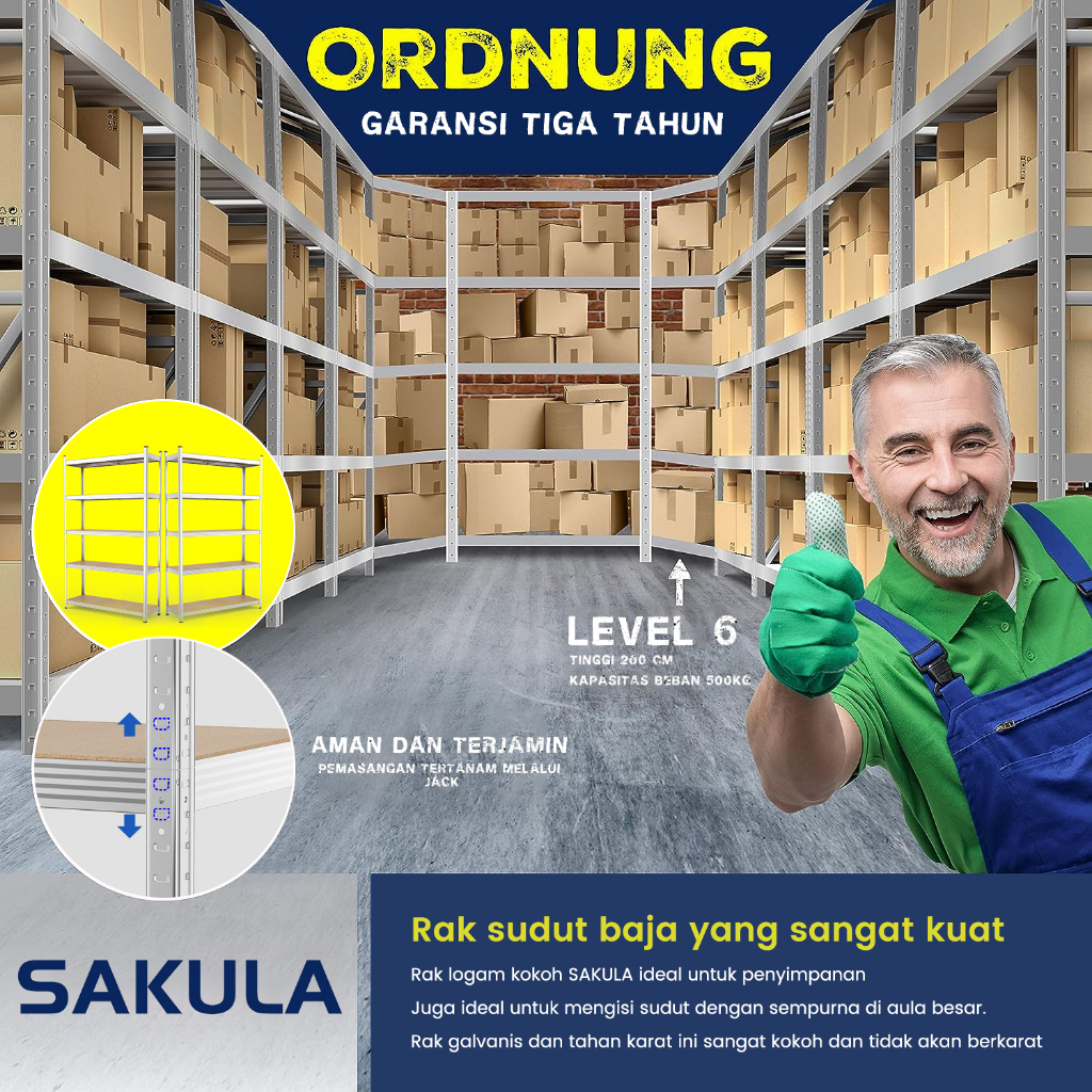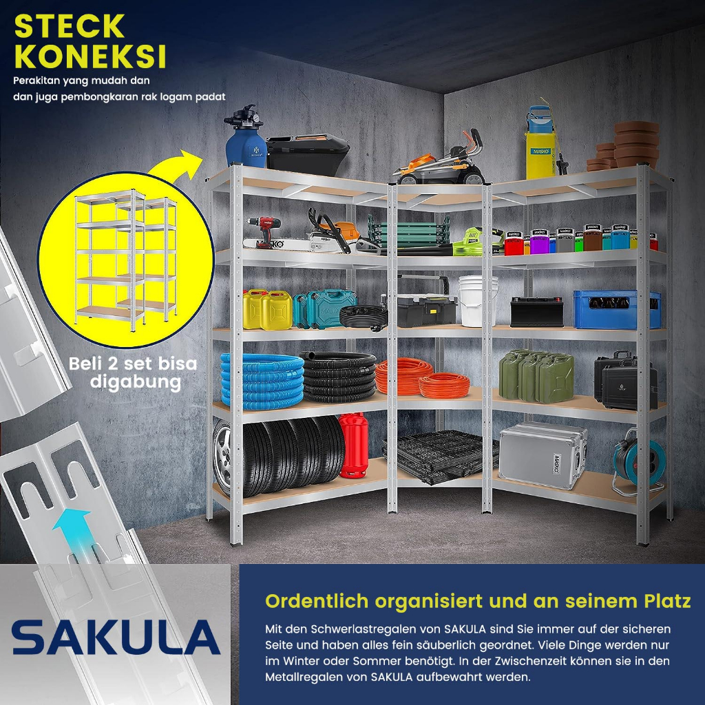 Sakula Rak besi Rak besi siku lubang Rak susun serbaguna/Rak gudang /Rak barang 3/4/5 tingkat Customizable
